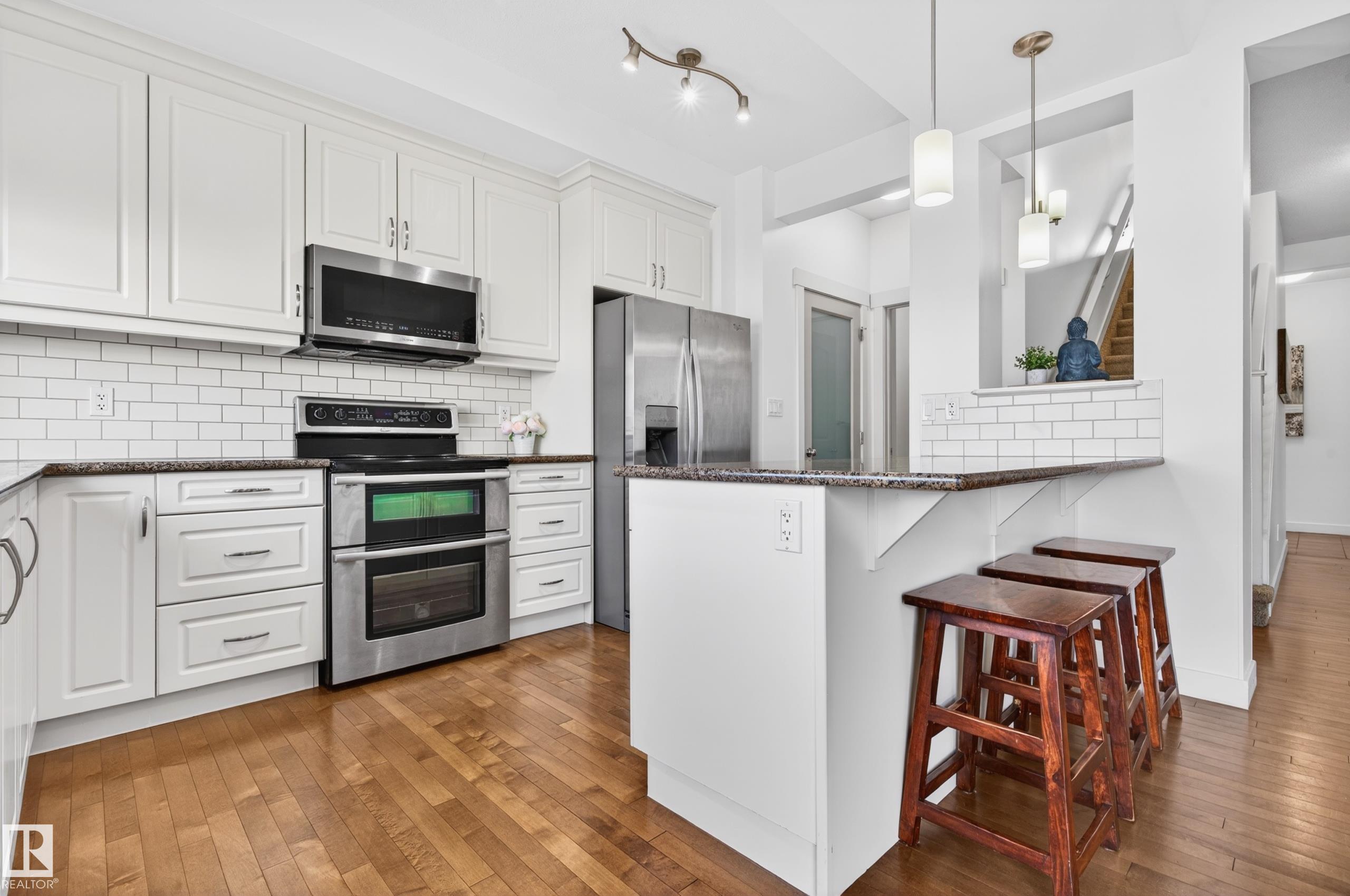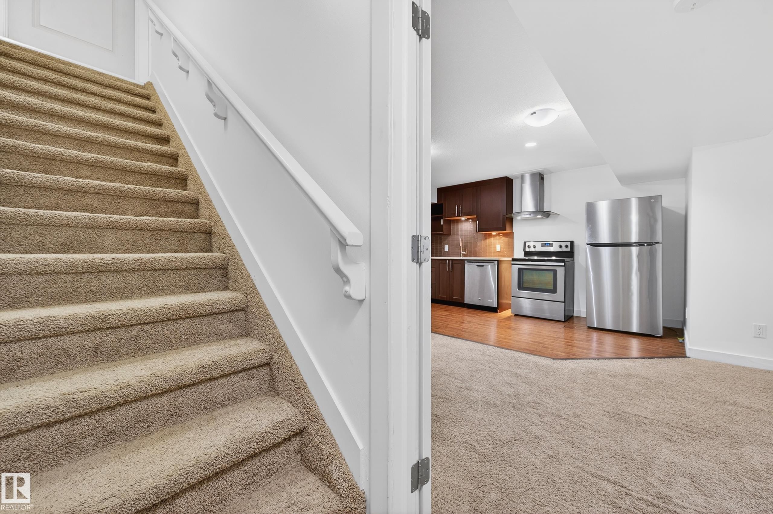 Affordable Luxury in Secord! Over 2100sqft on 2 levels + finished basement in this 2-sty home w/ total 4BR and 3.5 baths + double attached garage. Walking distance to schools & just mins to West Edmonton Mall w/ convenient access to public transit. The open-concept main floor showcases a spacious living room with a cozy fireplace, flowing into a chef-inspired kitchen complete with quartz countertops, a large island, white cabinetry, and a walk-in pantry. The dining area opens onto fenced yard + deck . A mud...