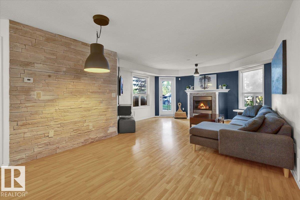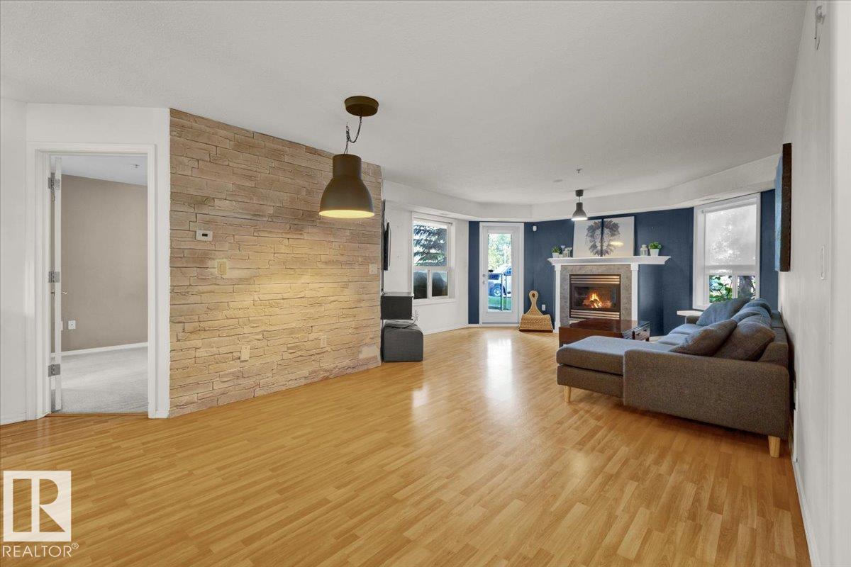 Welcome Home! Terrific Riverdale Location direct access to River Valley Trails with easy commutes Downtown and to the rest of the city. Nestled softly in one of Edmonton's most sought after communities. Ground floor unit with large wrap around patio. 18+ Adult Living complex and well cared for property boast Adult Living with tons to be proud of. Underground parking with storage locker and car wash. Grande entrance way leads to common area room, full gym, and pool table on the balcony overlooking main floor...