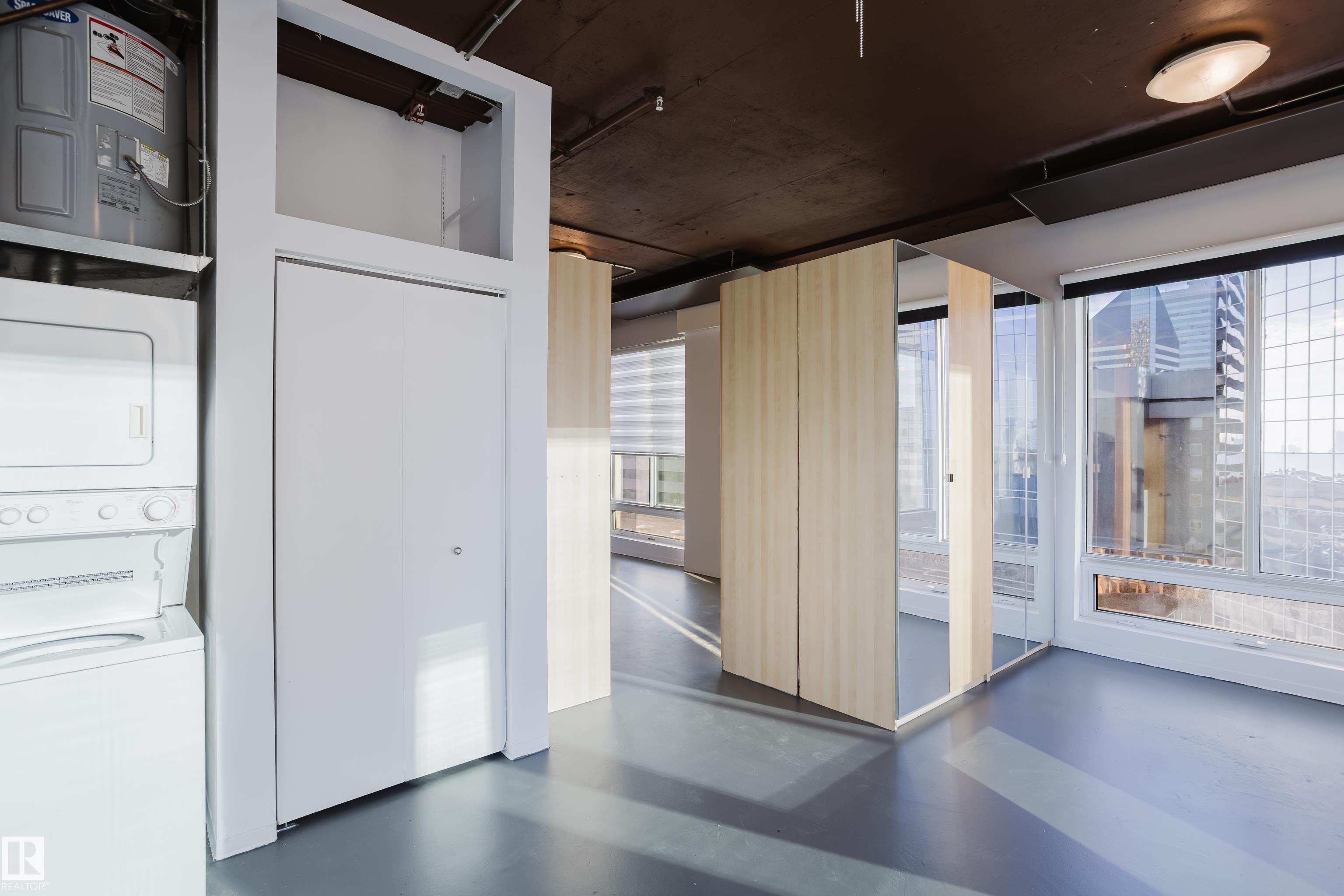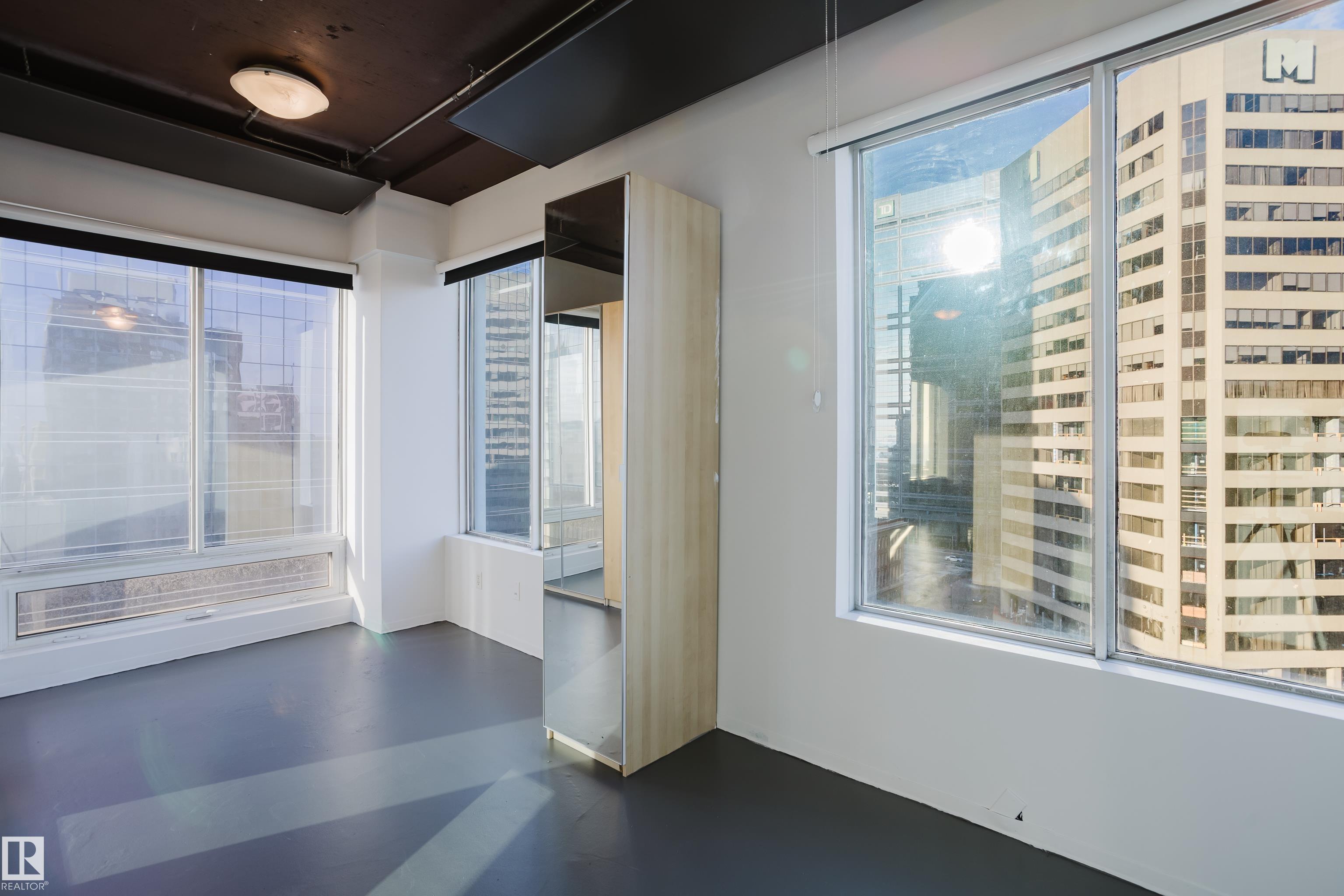 Exceptional value, style, and location in the heart of downtown—steps from Jasper Avenue and Rice Howard Way. This impressive corner suite features rare 10' ceilings and six oversized windows that fill the home with natural light and provide open western and northern views well above the neighbouring concrete wall. With high-efficiency heating panels and a warm, inviting layout, this unit stands apart as an excellent option for professionals, couples, or students seeking convenient access to MacEwan Univers...