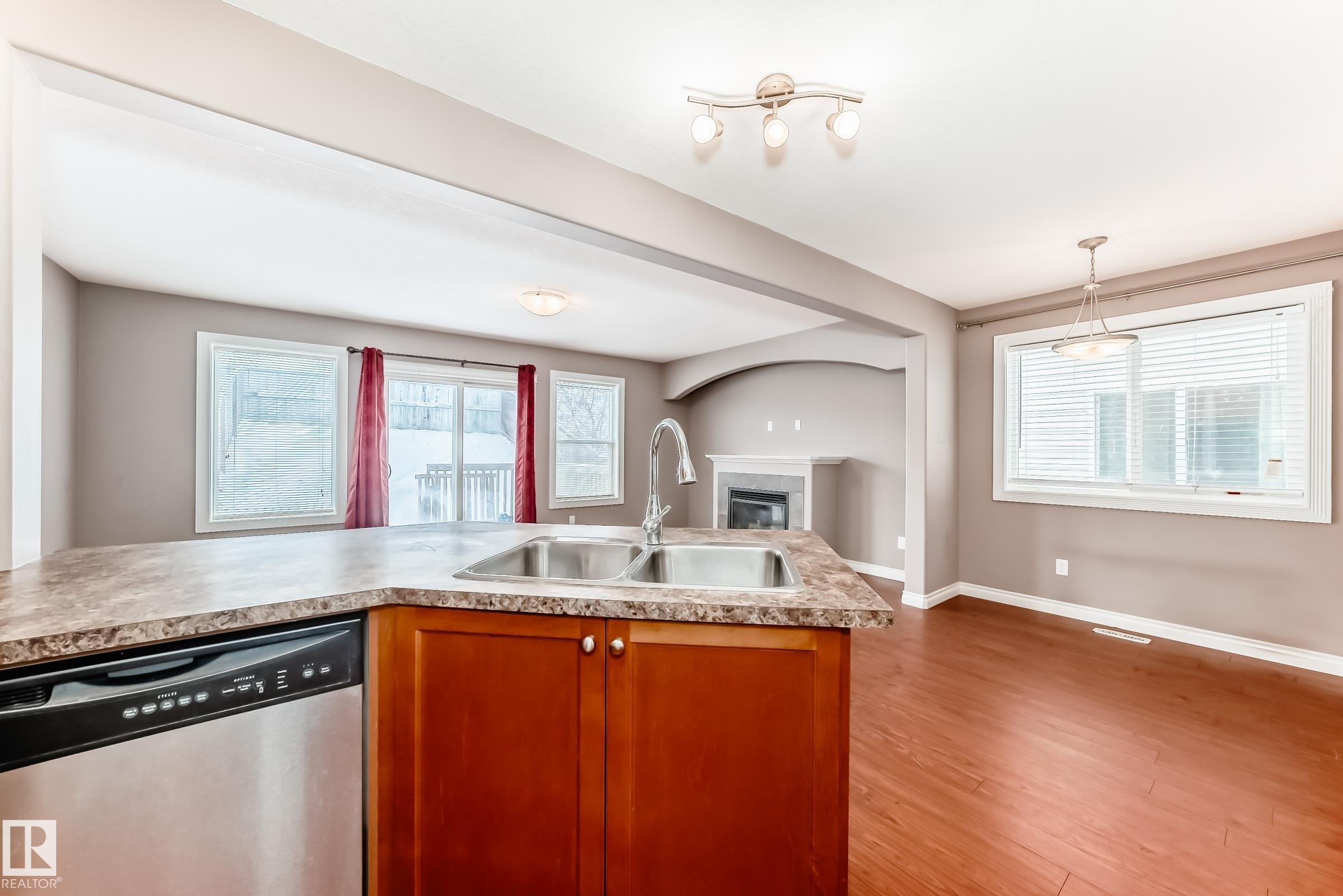 This 2sty half duplex offers 4 bedrooms, 3.5 bathrooms, and a fully developed basement perfect for growing families or those needing extra space. The main floor features a bright open concept with maple cabinetry, stainless steel appliances, and a peninsula island ideal for entertaining. The cozy living room is highlighted by a gas fireplace, with patio doors leading to a deck overlooking a fully fenced back yard. Upstairs, you’ll find a spacious Primary suite complete with a walk-in closet and 4pc ensuite....