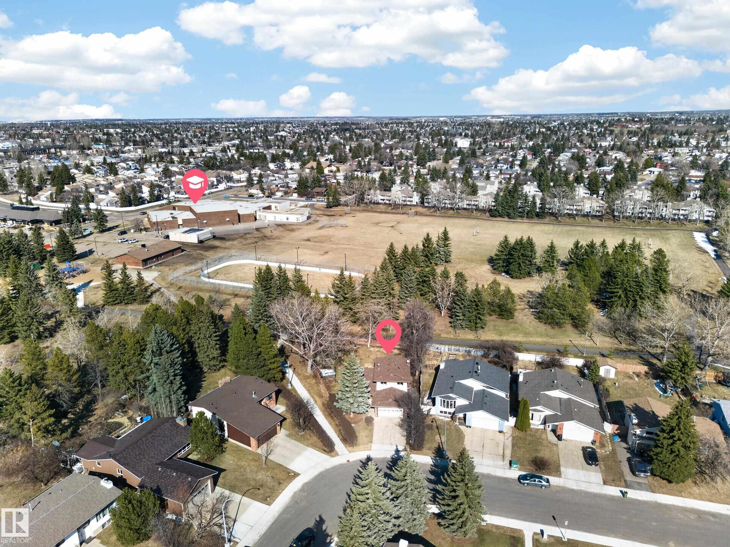 A rare opportunity to enjoy ACREAGE-style living in the heart of the city! Situated on a MASSIVE PIE-SHAPED lot, this property offers exceptional privacy with no rear neighbors —backing onto a playground, walking trails, and green space that doubles as a skating rink in winter. With approx. 2,550 sq. ft. of total living space (including a FULLY FINISHED BASEMENT), this home features 2 living areas, a spacious dining room, main-floor laundry, a cozy wood-burning fireplace, and a 2-piece bath. Upstairs offers...
