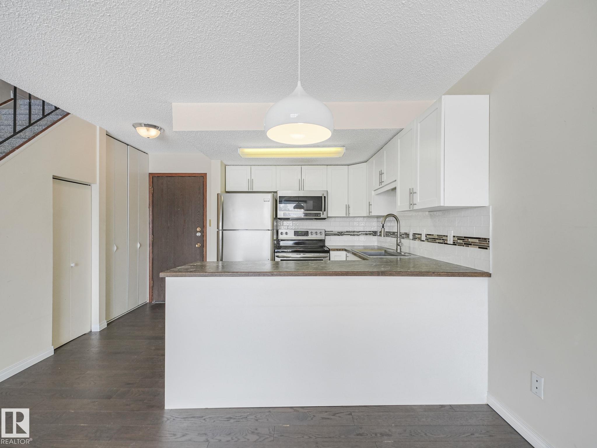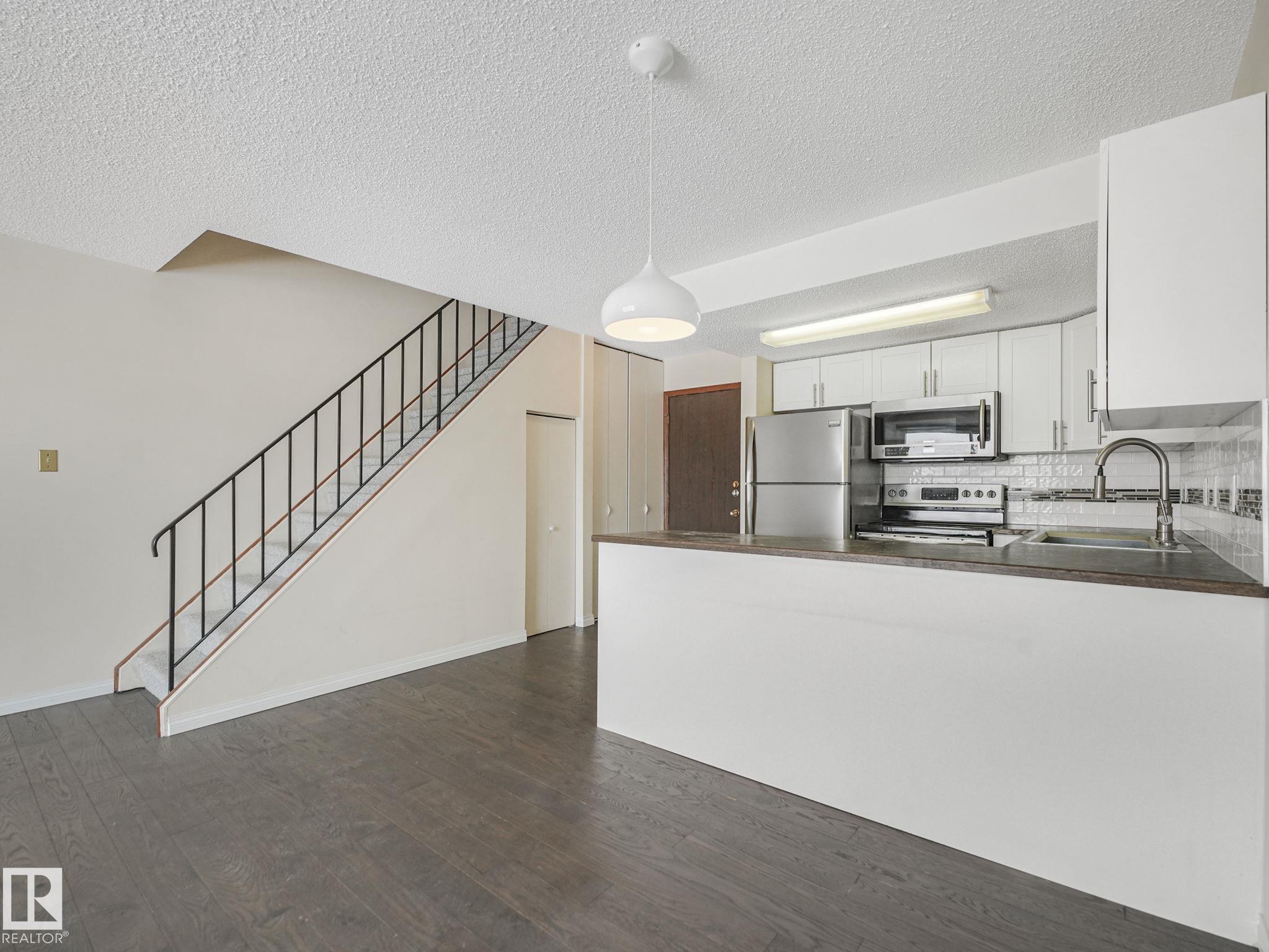 Welcome to this stylish 2-storey apartment condo in the community of Cromdale, just steps from Edmonton’s stunning River Valley! Enjoy beautiful river valley views and an unbeatable location close to downtown, offering quick access to restaurants, shopping, transit, and all amenities. This well-designed home features 2 spacious bedrooms and a beautifully updated 4-piece bathroom upstairs, along with the convenience of in-suite laundry on the upper level. The main floor offers a bright, open-concept layout, ...
