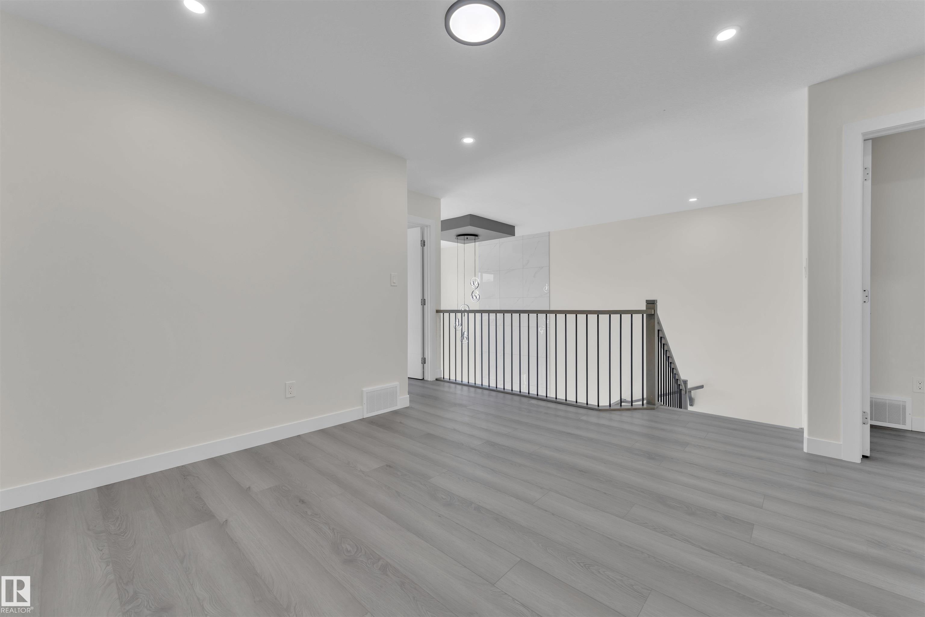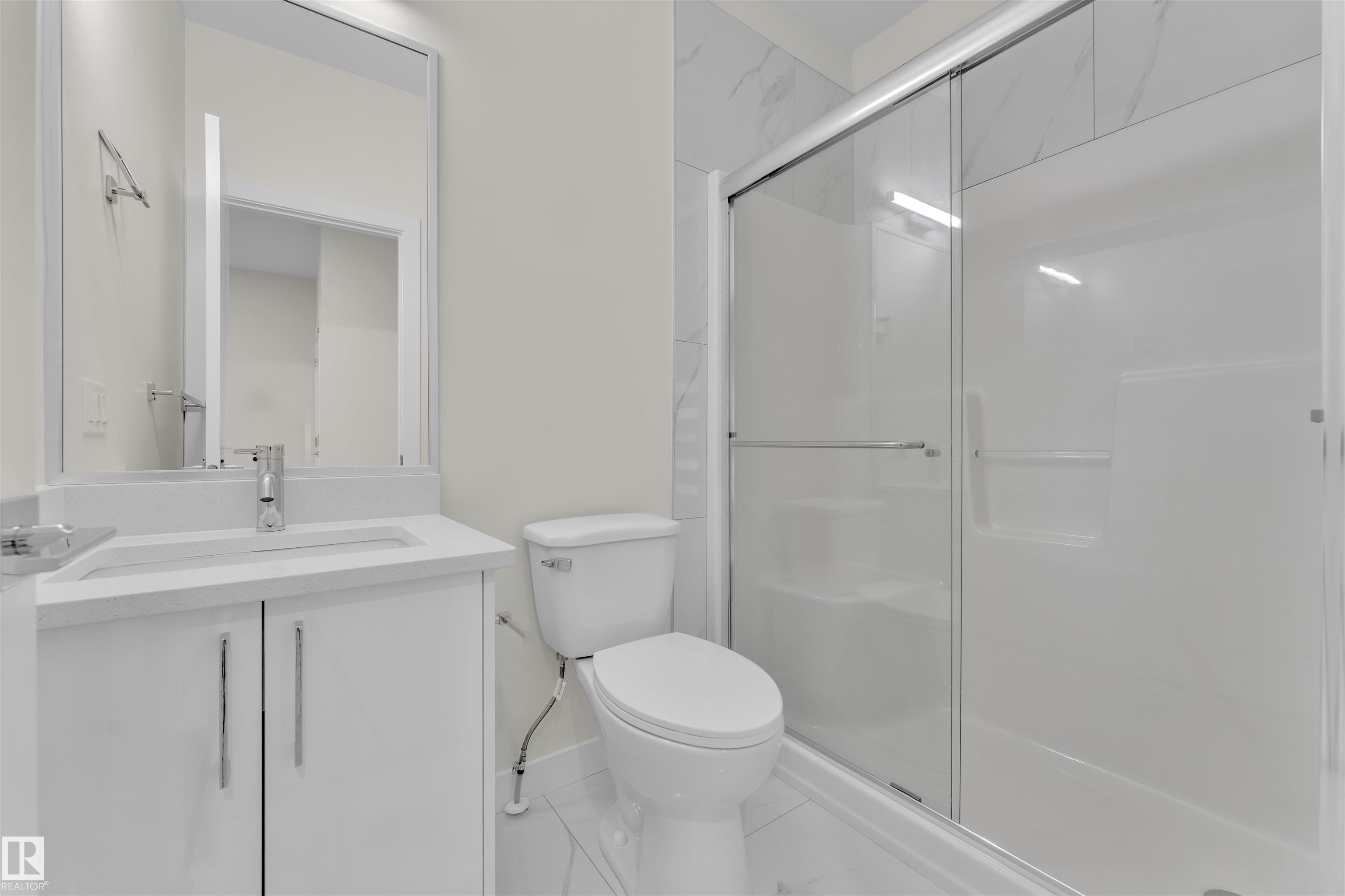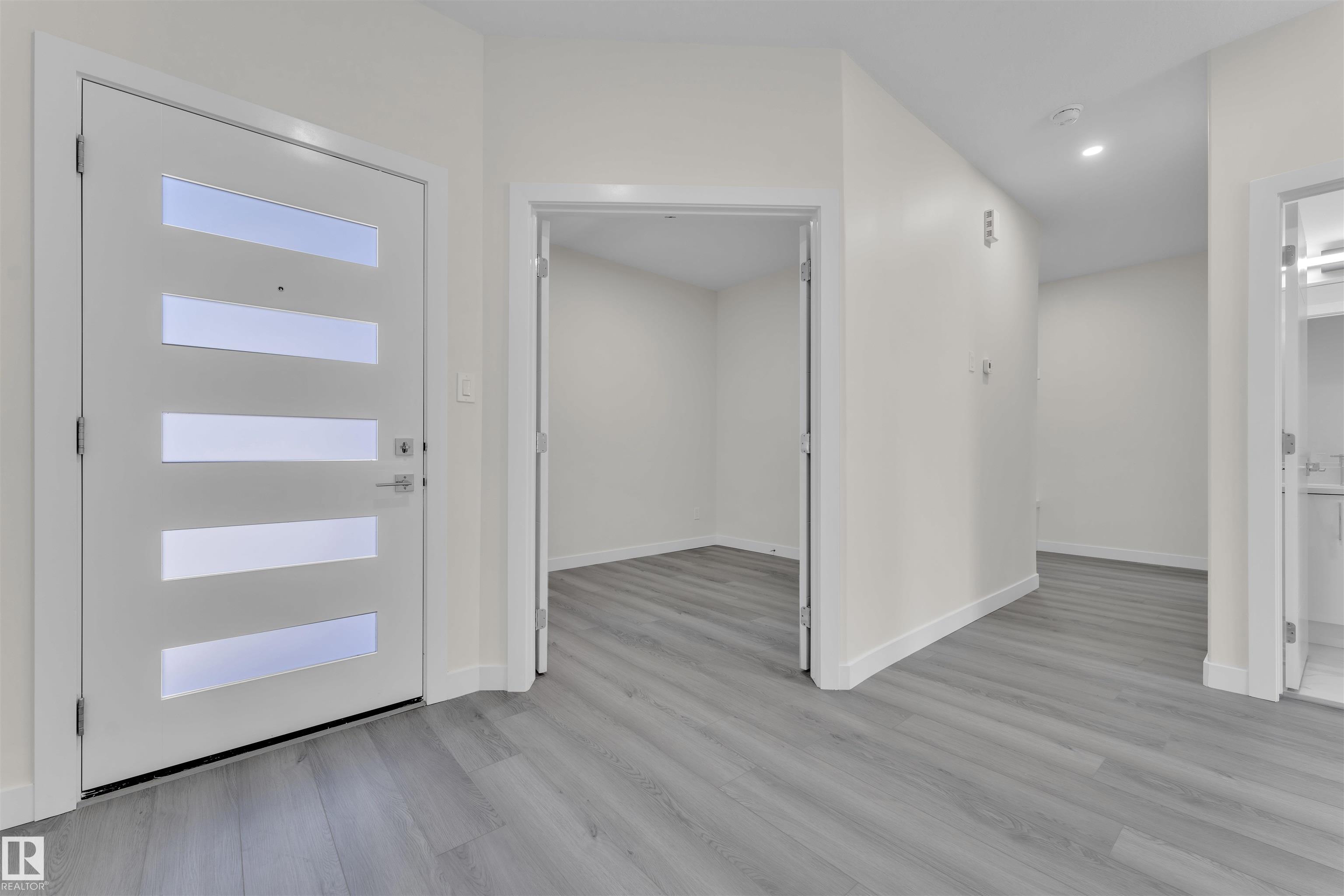 Detached front double car garage home on a regular lot in Fenwyck, backing onto a walking trail. This open-concept layout features a main floor bedroom with closet and full bath, a modern kitchen with quartz countertops and center island, plus a separate spice kitchen. The living room boasts open-to-below ceilings, an electric fireplace, and tile feature wall. Dining nook opens to the backyard. Vinyl flooring throughout main and upper floors, with elegant spindle railings. Upstairs includes a bonus room, la...