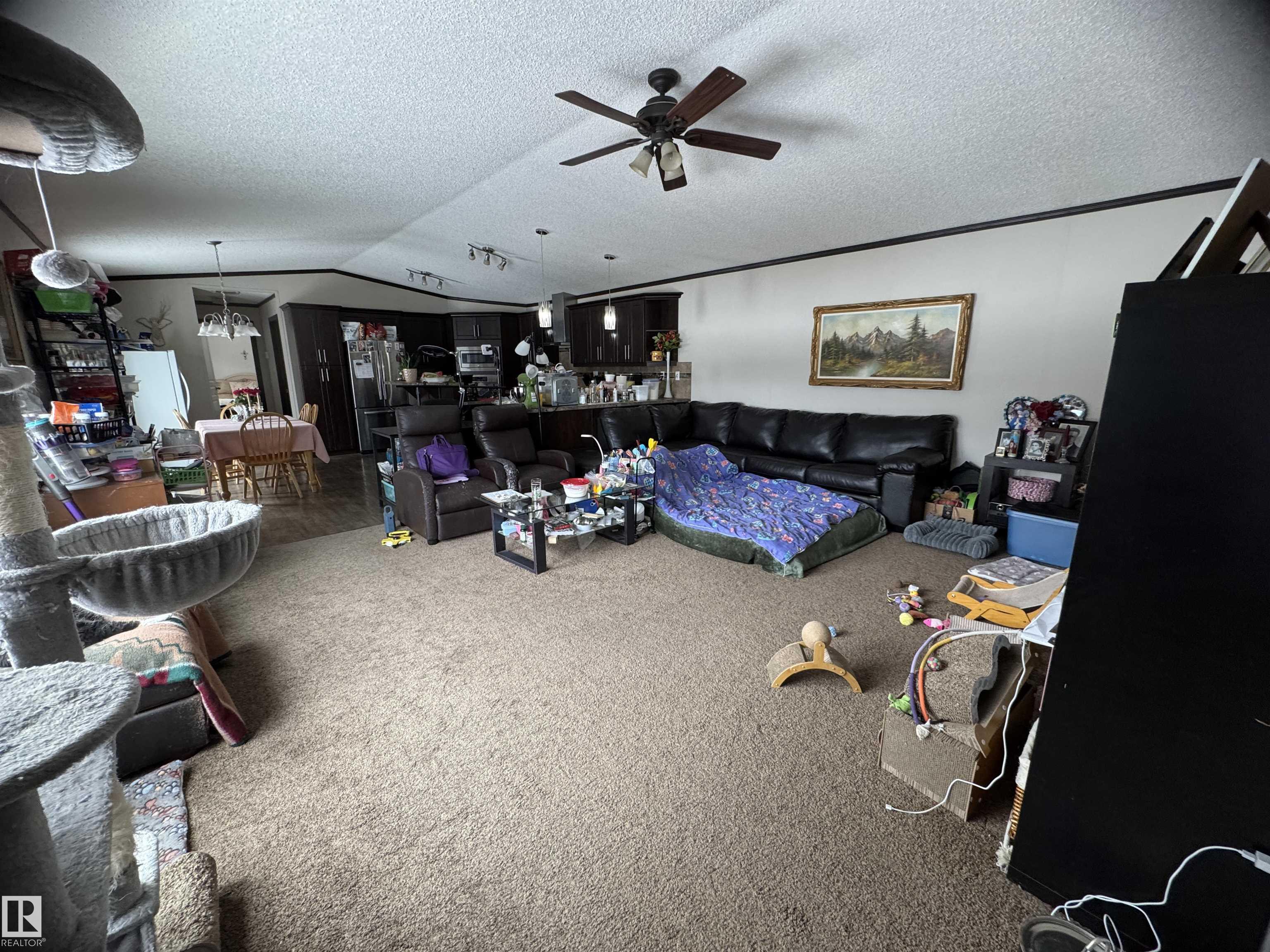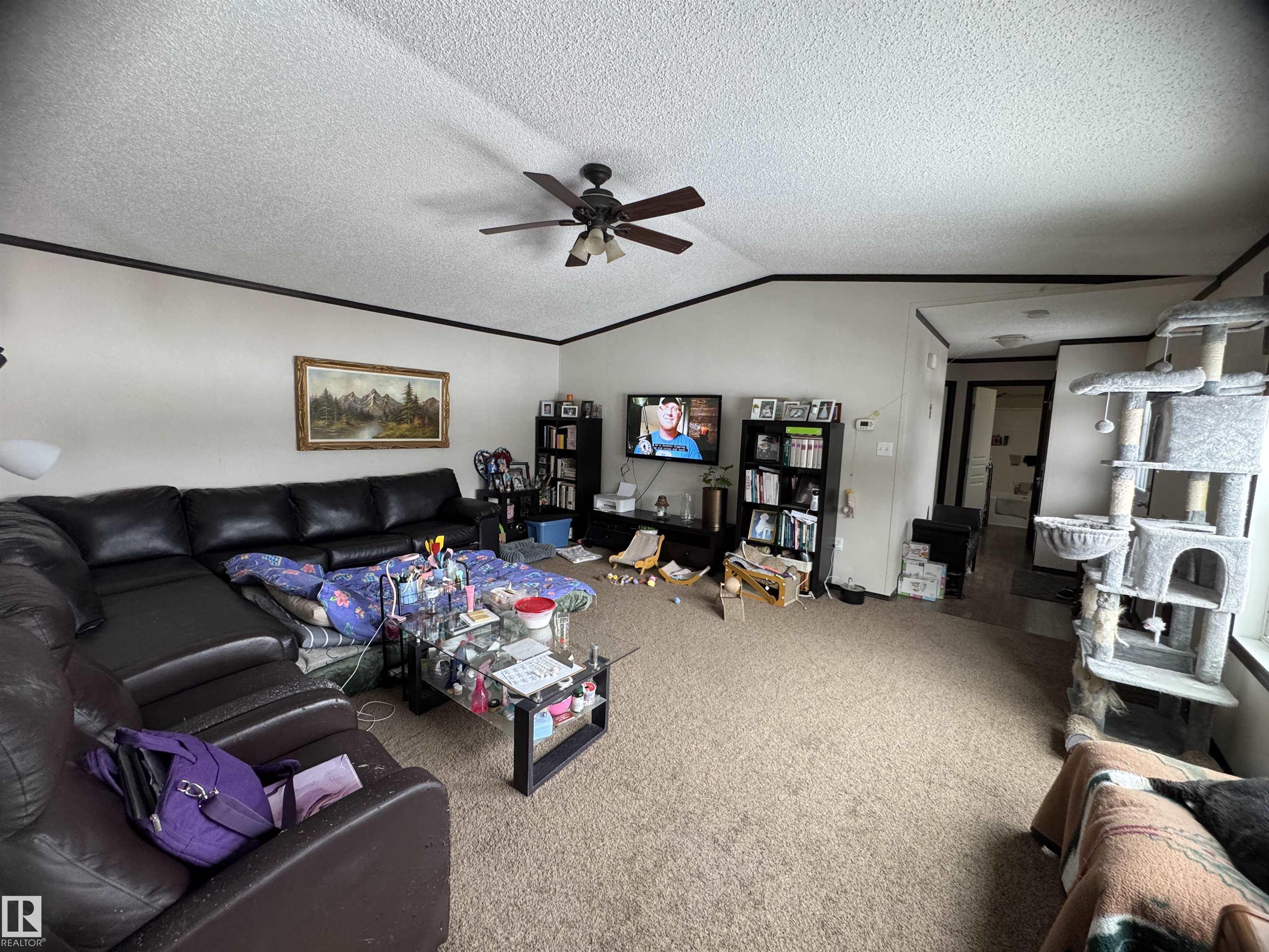 Welcome to Sprucehill Estates! Situated on 1.91 fully fenced acres, this 1520 sq ft 2014 mobile home offers space, privacy and plenty of potential. Featuring 3 bedrooms and 2 bathrooms, including a spacious 5-piece ensuite, this property is ideal for families or anyone wanting room to spread out. The home backs onto trees, giving you a peaceful rural setting with added privacy. A great well provides tons of water, and the adorable outbuilding offers exciting potential for a guest house, studio, hobby space ...