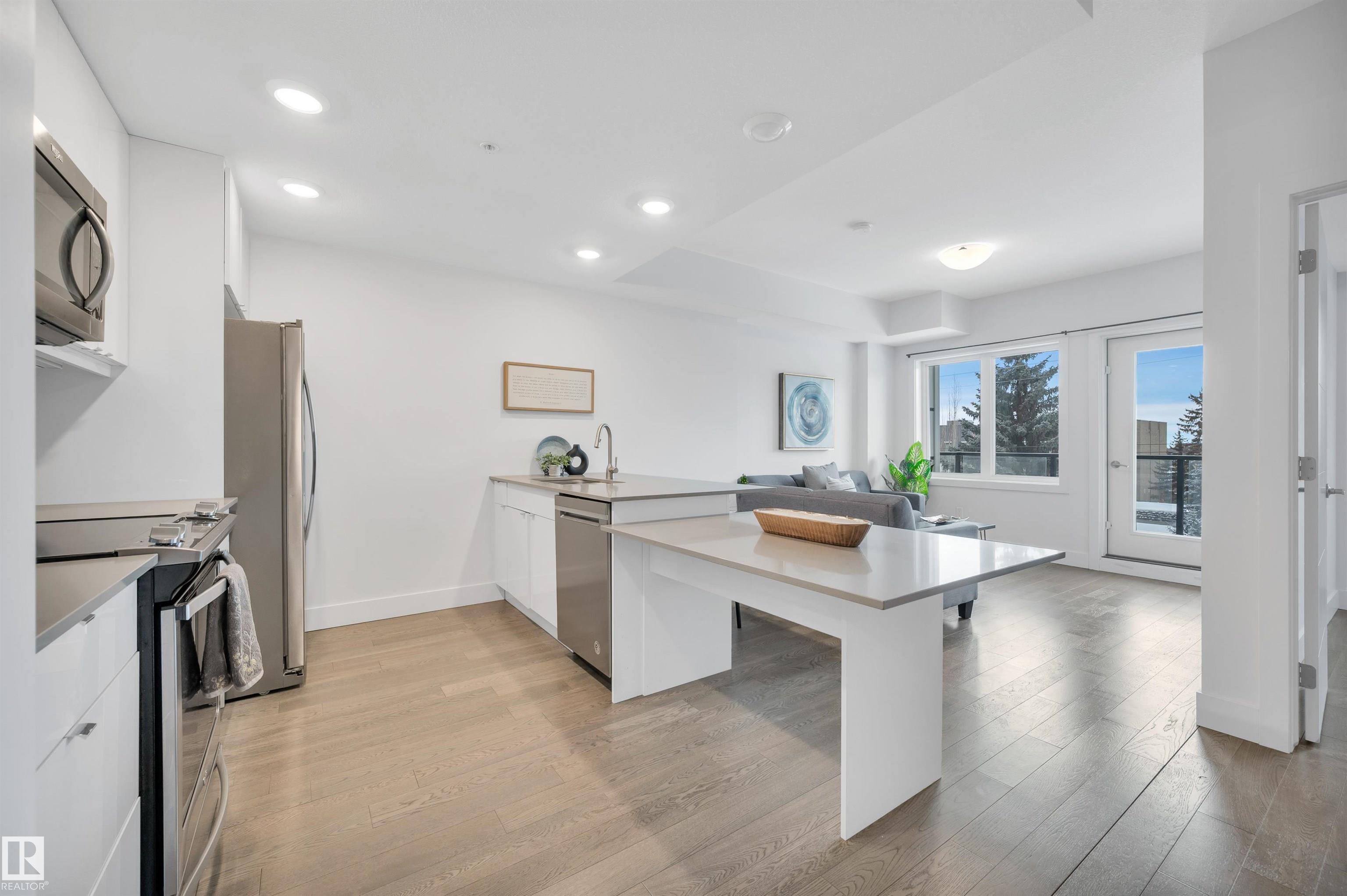 Welcome to Cascade Luxury Condos, where comfort, convenience and community come together. Located in the heart of Bonnie Doon's charming French Quarter, this solid CONCRETE and STEEL building offers quiet and secure living. This beautifully maintained unit features modern quartz countertops throughout, stainless steel appliances and a separate laundry and storage room for added functionality. Enjoy the convenience of heated underground parking, ideally located just steps from the elevator access door. Step ...