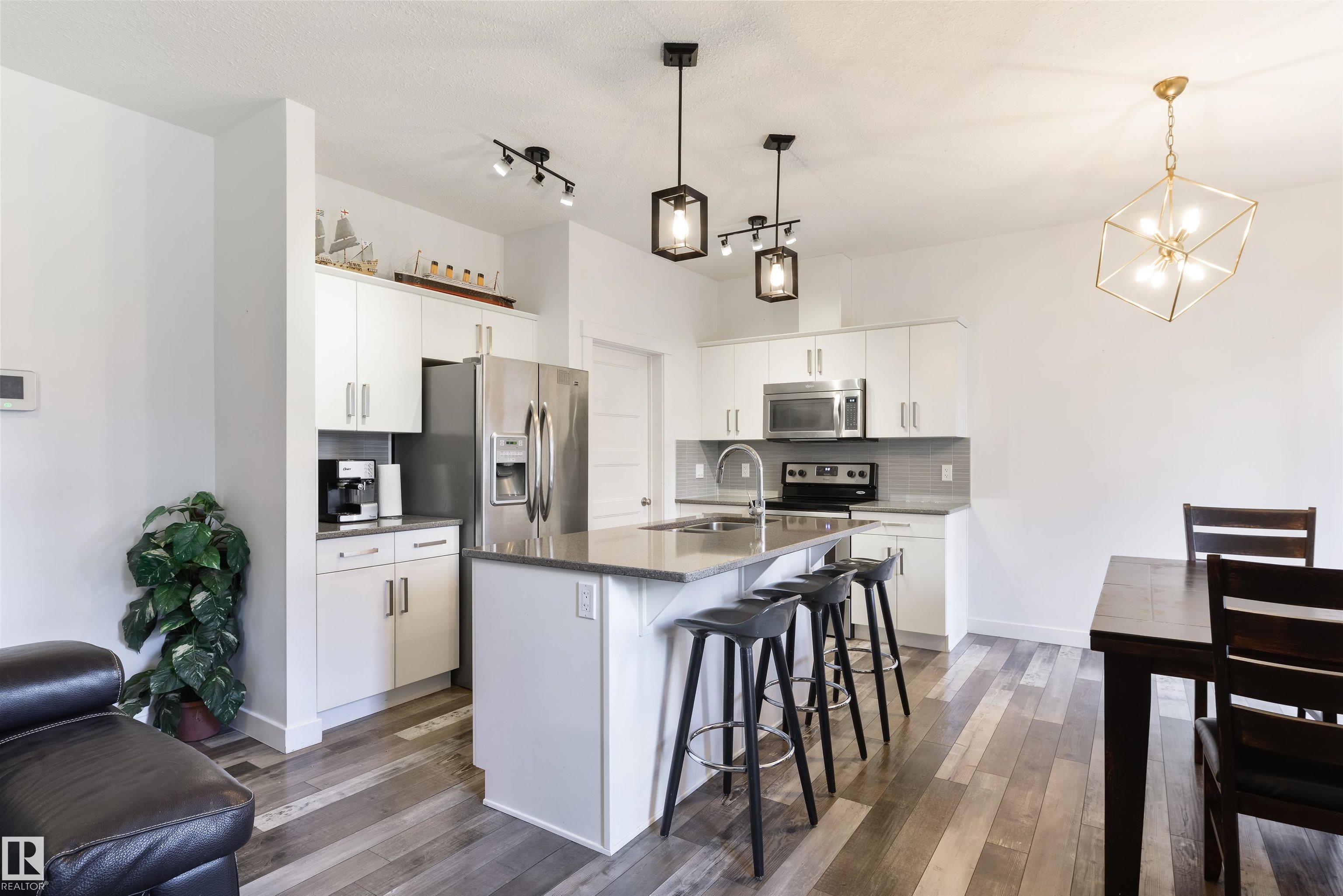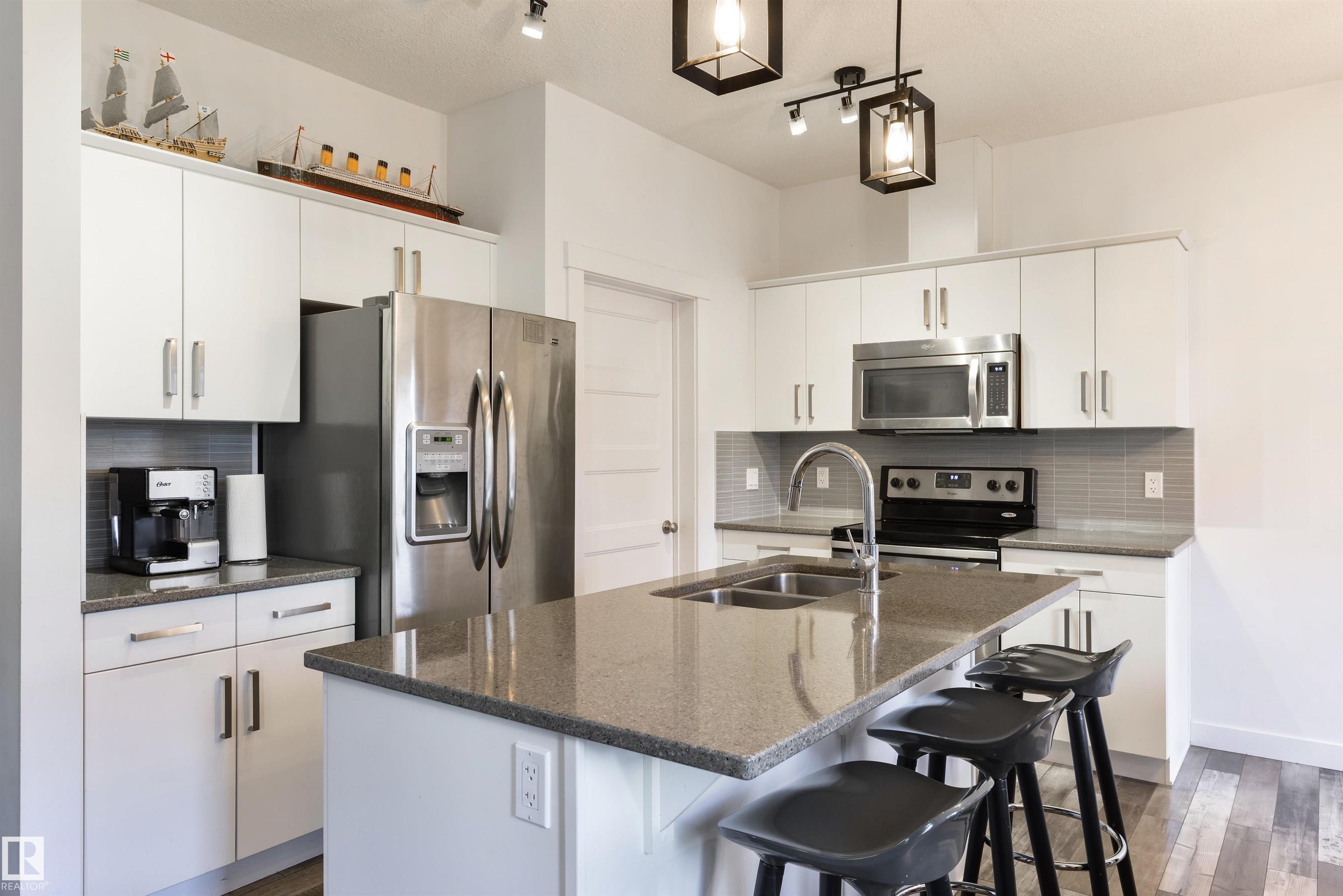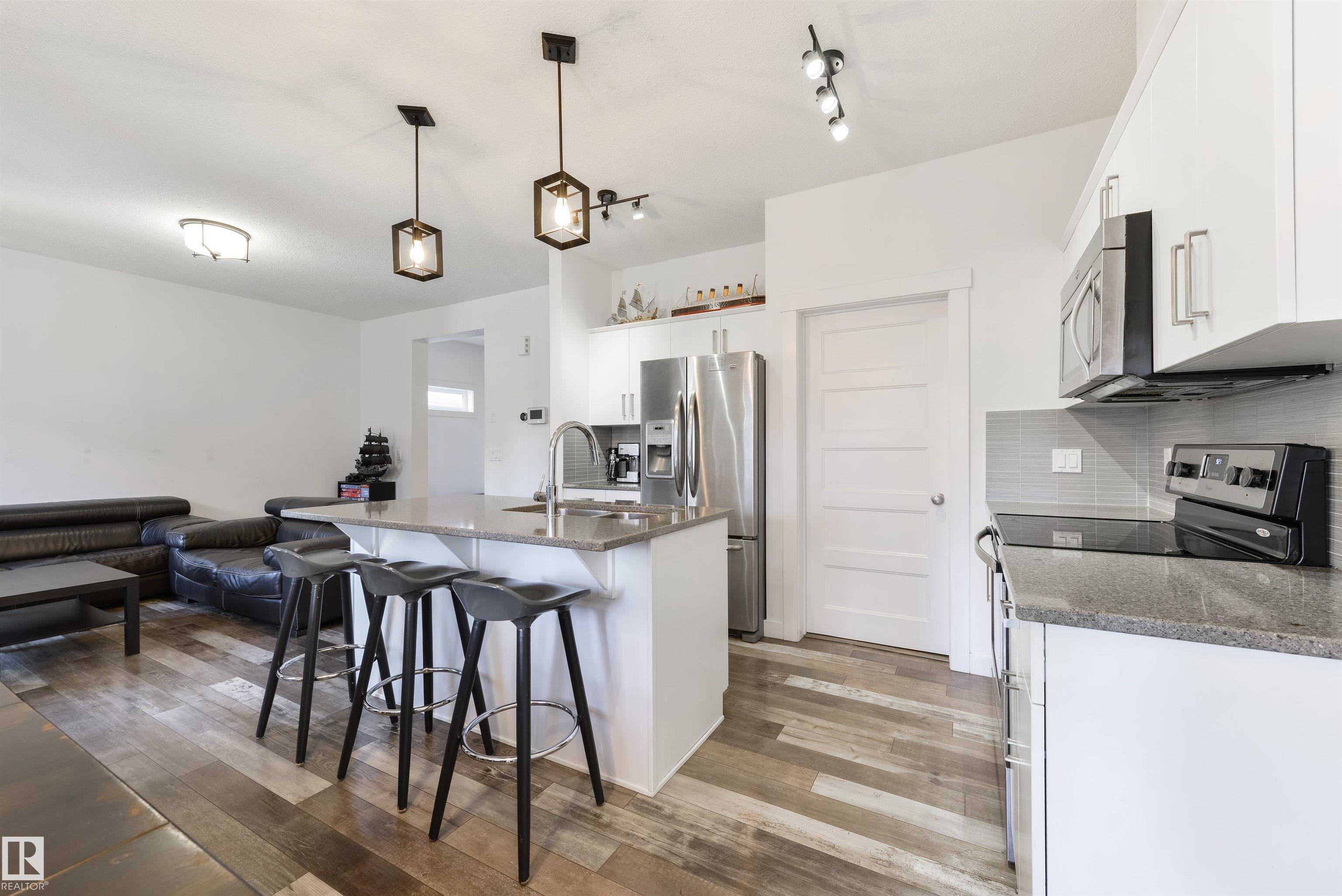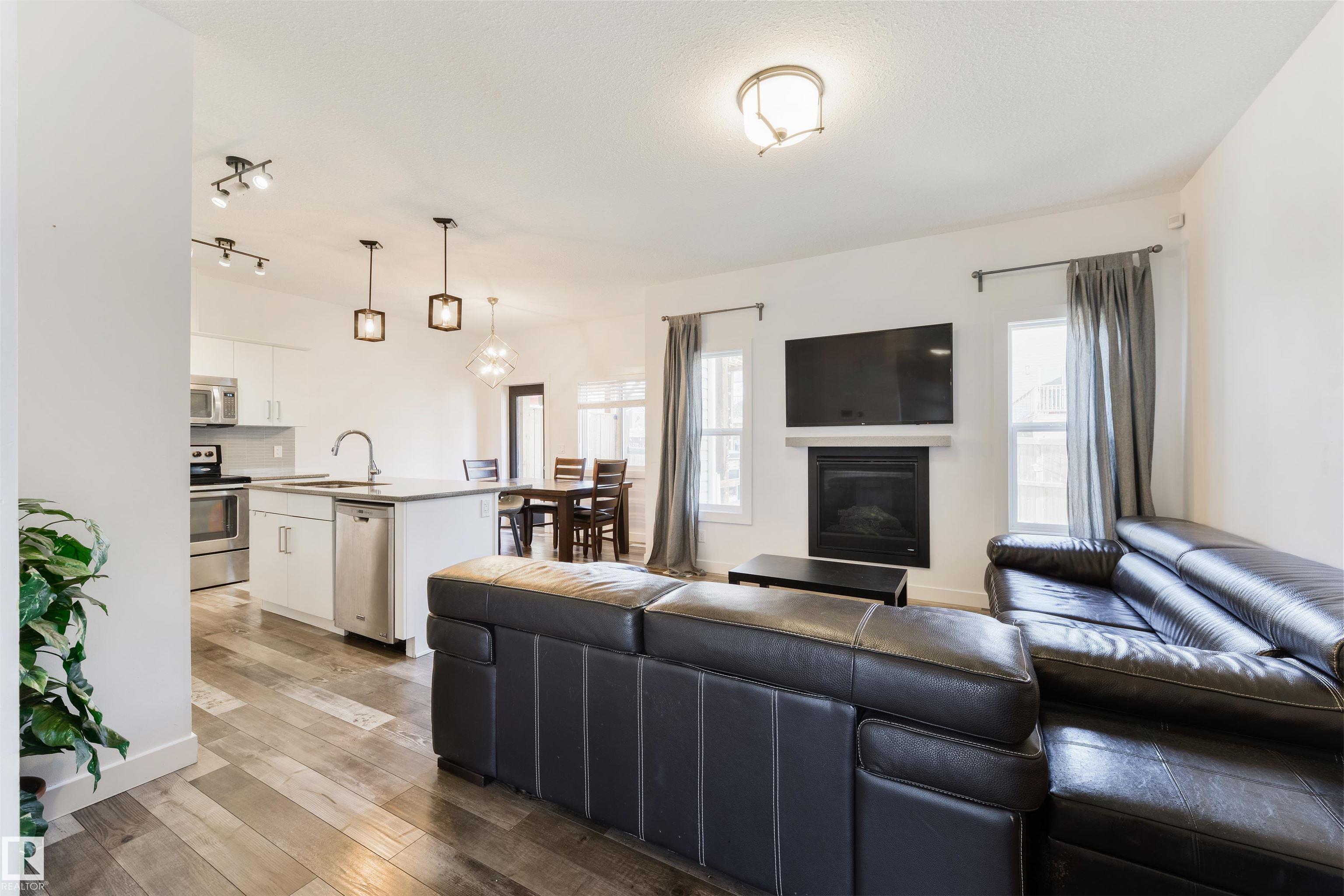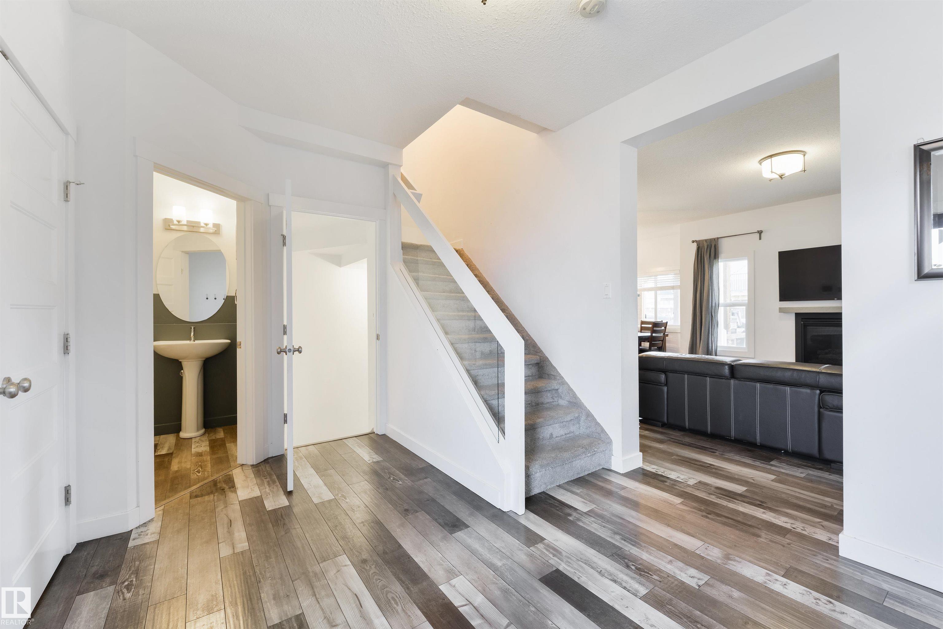 Tucked toward the back of a cul-de-sac in one of Spruce Grove's most connected neighbourhoods, this fully-finished half duplex offers the space, upgrades, & location you’ve been waiting for. The main floor features a large foyer w/ 2pc powder room, 9’ ceilings, lovely living room w/ gas fireplace, spacious kitchen w/ center island, quartz countertops, stainless appliances, separate dinette, & walk-through pantry leading to the double-attached garage. Upstairs you’ll find three generous-sized bedrooms includ...