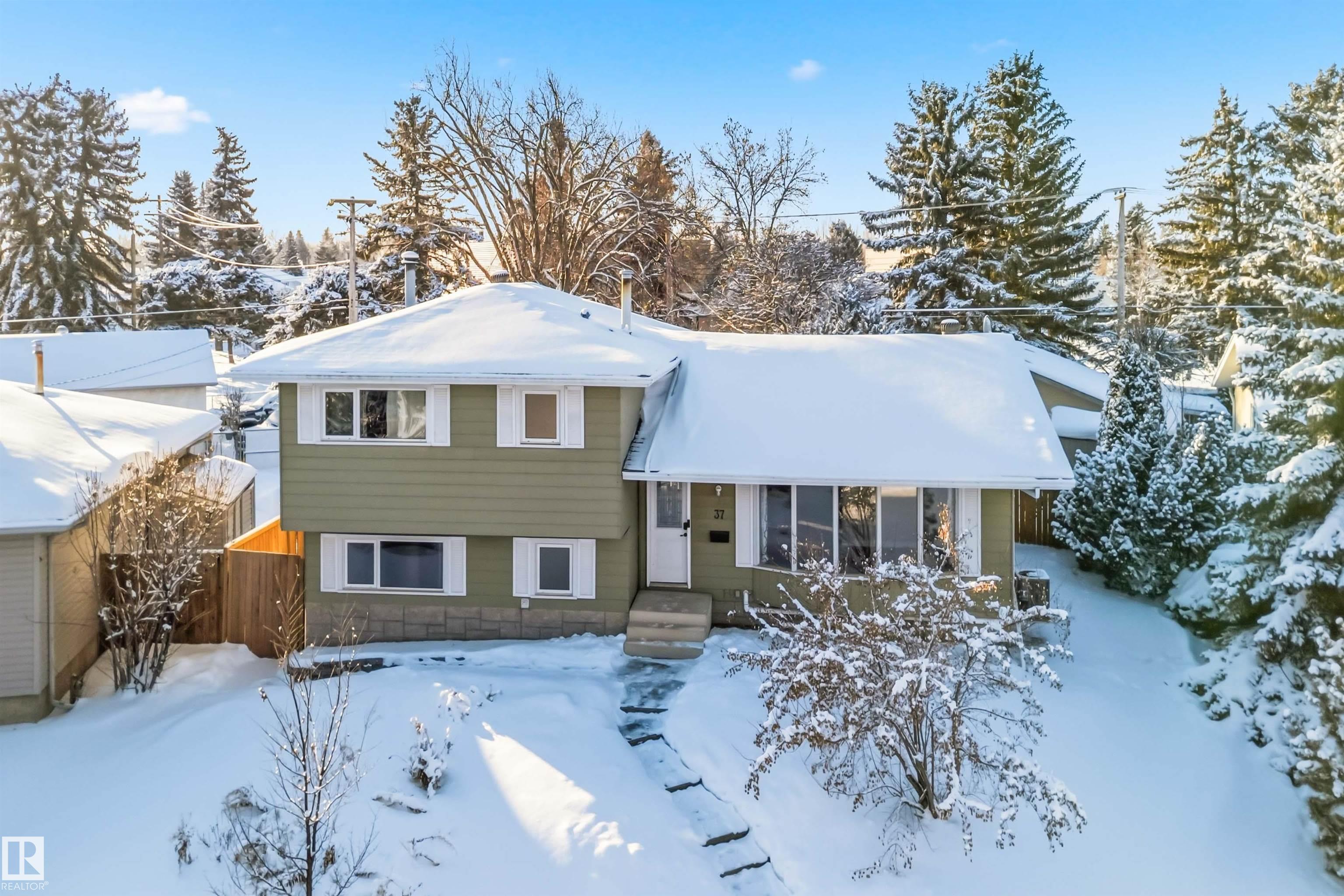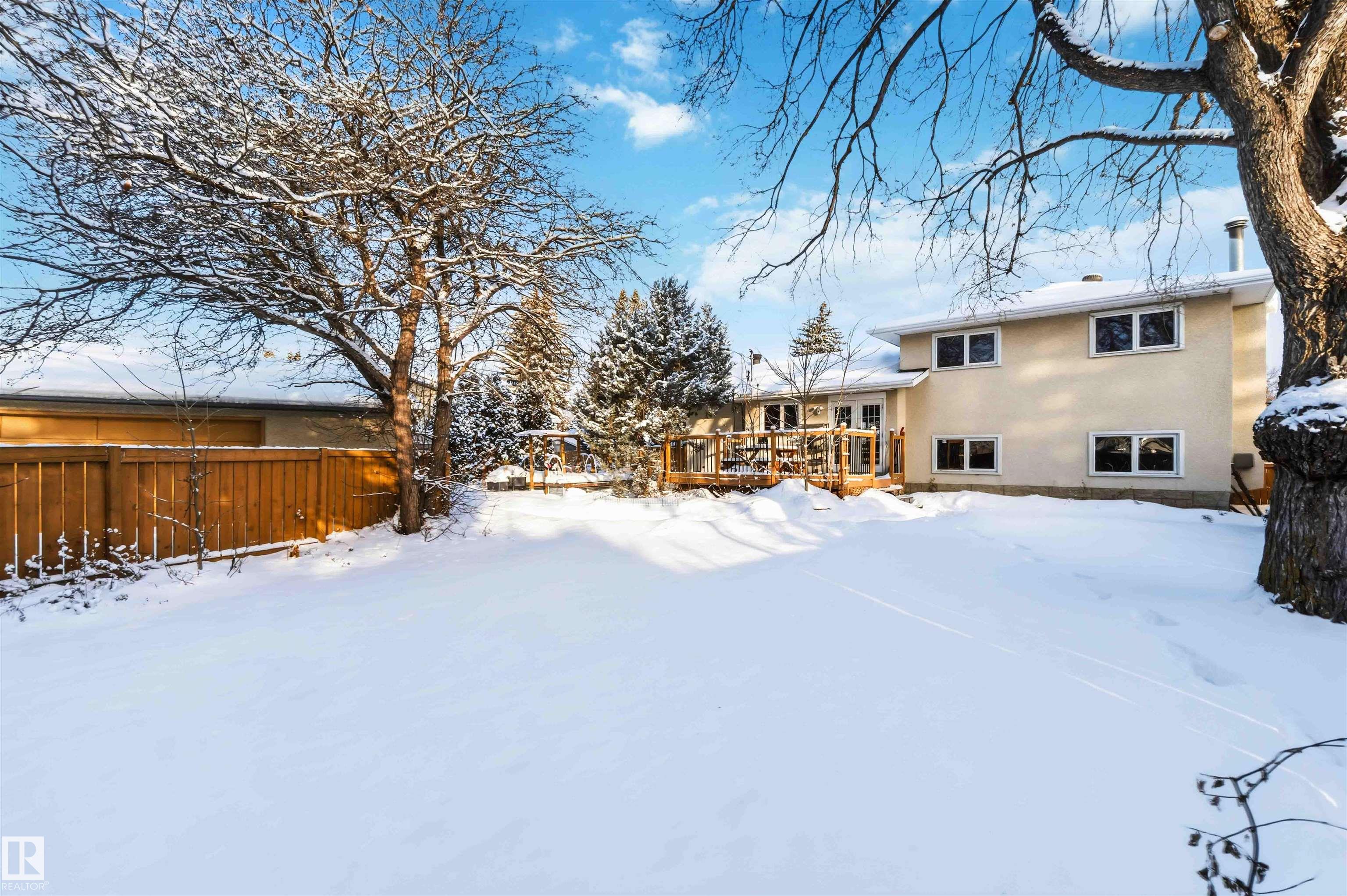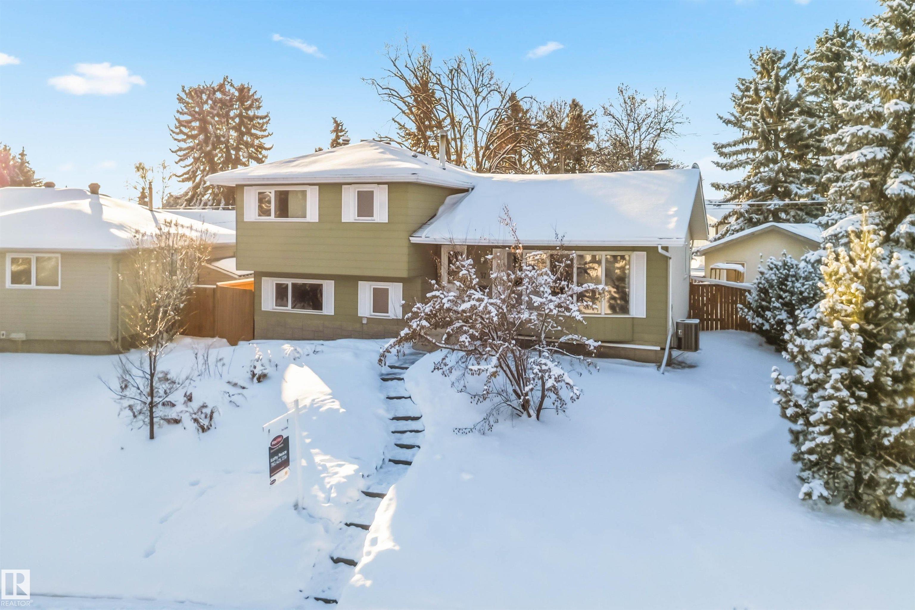 Rarely is a home of this caliber offered in the BEST location in Devon! Steps out the back gate to the Junior High School, and across a field to the High School. Just out your front door and you have Ravine access with an abundance of paved walking trails. The Pie lot on a quiet street, has a huge mature yard with a fabulous deck and raised Garden beds. The back lane has an oversized, detached, HEATED garage. Inside the 4 level split home you will be met with gorgeous natural stone tiles and a HUGE open con...