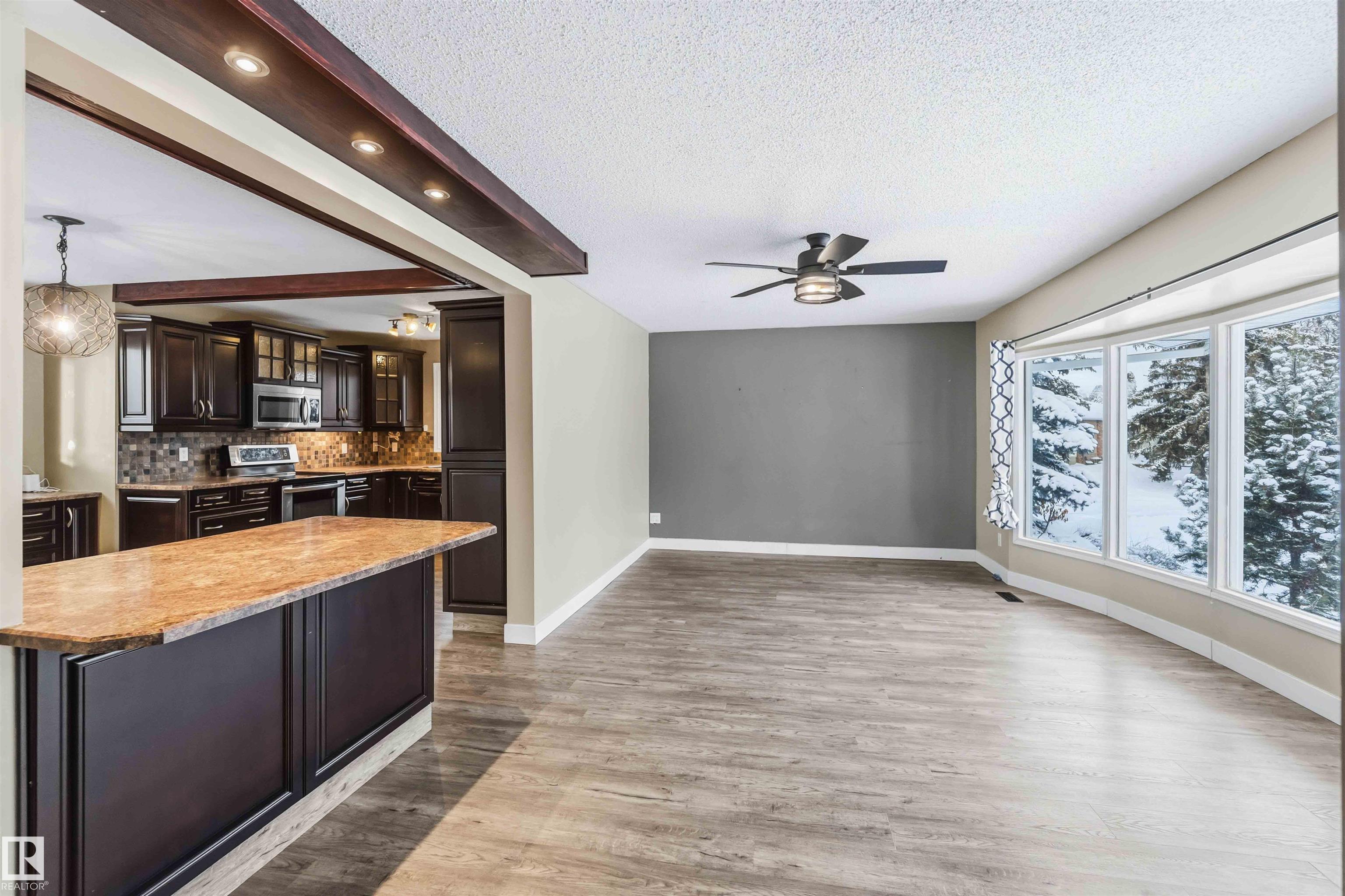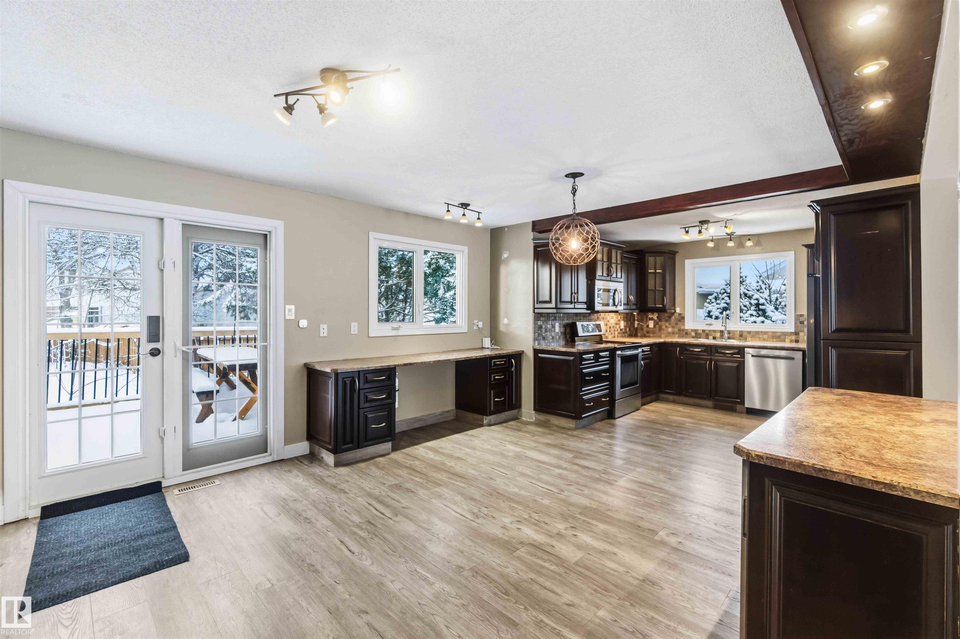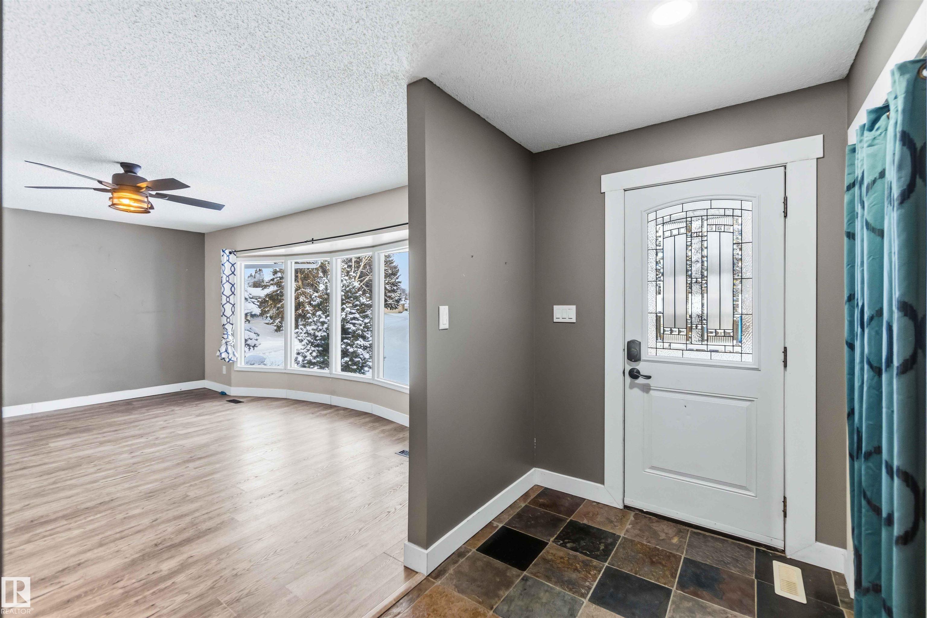 Rarely is a home of this caliber offered in the BEST location in Devon! Steps out the back gate to the Junior High School, and across a field to the High School. Just out your front door and you have Ravine access with an abundance of paved walking trails. The Pie lot on a quiet street, has a huge mature yard with a fabulous deck and raised Garden beds. The back lane has an oversized, detached, HEATED garage. Inside the 4 level split home you will be met with gorgeous natural stone tiles and a HUGE open con...