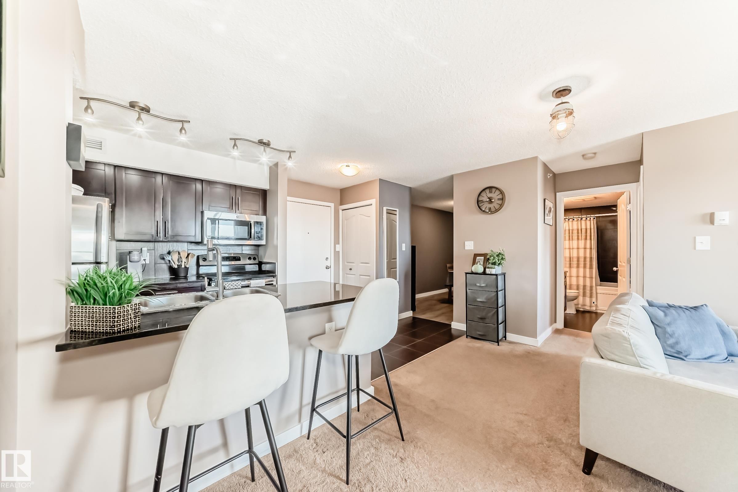 TOP-FLOOR 2 Bed, 2 bath condo with 2 PARKING STALLS AND STORAGE CAGE ! Located in THE HEART OF McConachie, this well maintained condo offers the perfect blend of comfort and convenience. FEATURING -VERSATILE DEN! The additional den area offers flexibility for a home office, dining space, or reading nook. This open concept is perfect for first time buyers or investors alike. Step into a modern gourmet kitchen complete with SSA, espresso cabinetry, and a breakfast bar-perfect for both everyday meals and enter...