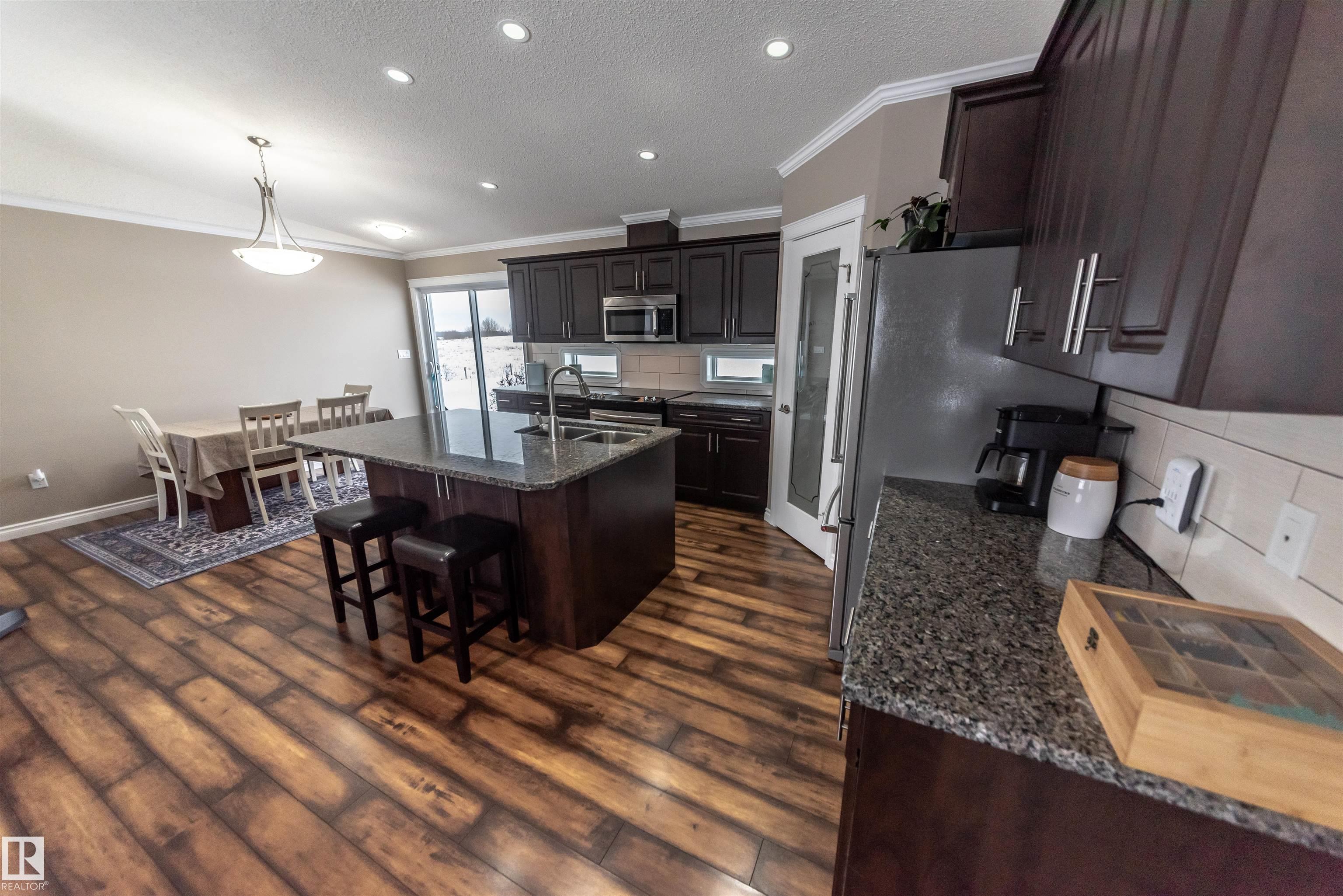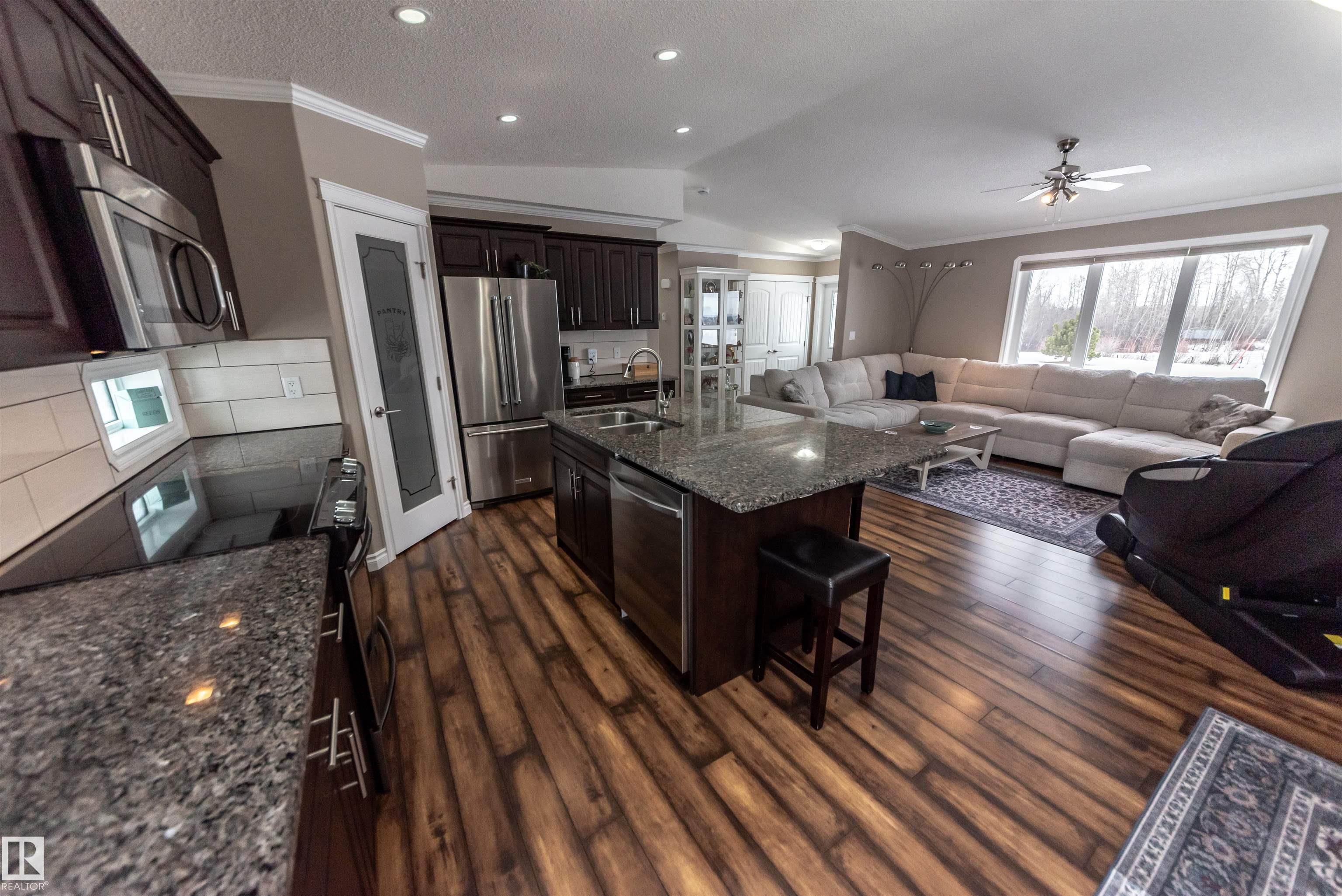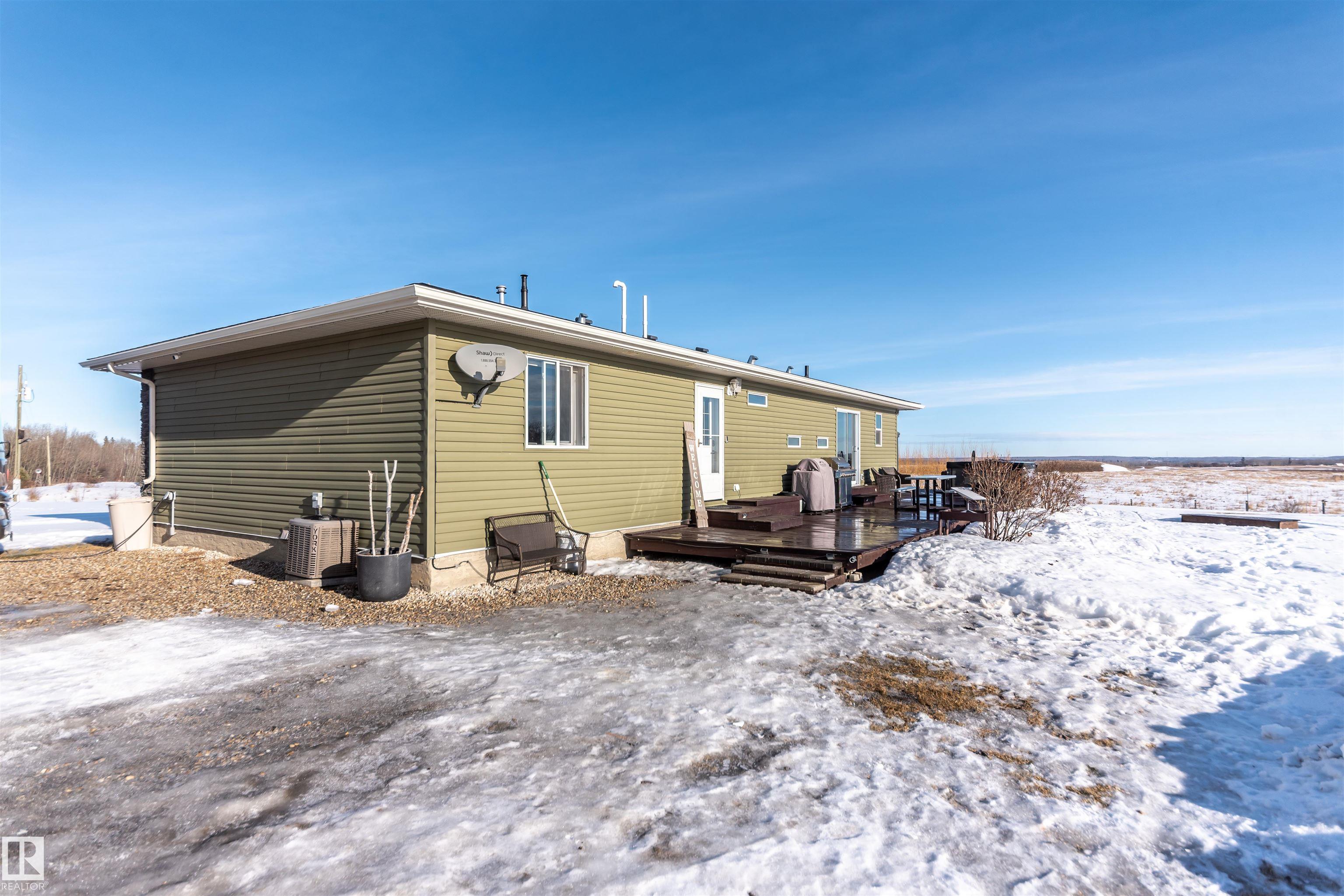 5.19 acres out of subdivision. This 1,500+ sqft. Jandel Home features 3 bed, 2 bath bungalow shows is in like new condition. Numerous upgrades such as vaulted ceilings, pot lights, rich dark cabinetry, granite countertops in the kitchen accompanied by S/S appliances, convenient walk-through pantry with stand up freezer, laminate flooring, central A/C for those hot summer nights, spacious primary bedroom w/ deck access, 3 pc ensuite and walk-in closet. full 4 pc bath, 2 spacious bedrooms and a view of Lac ...