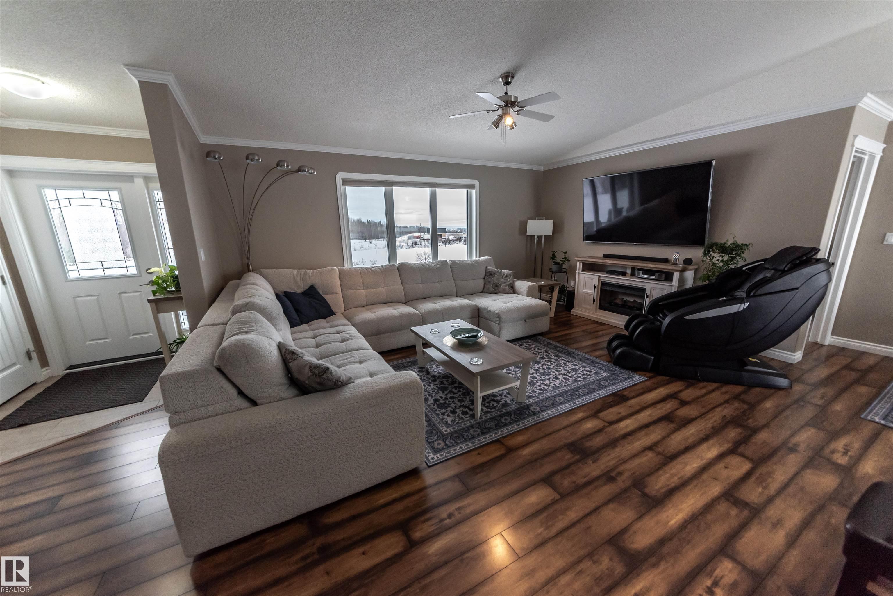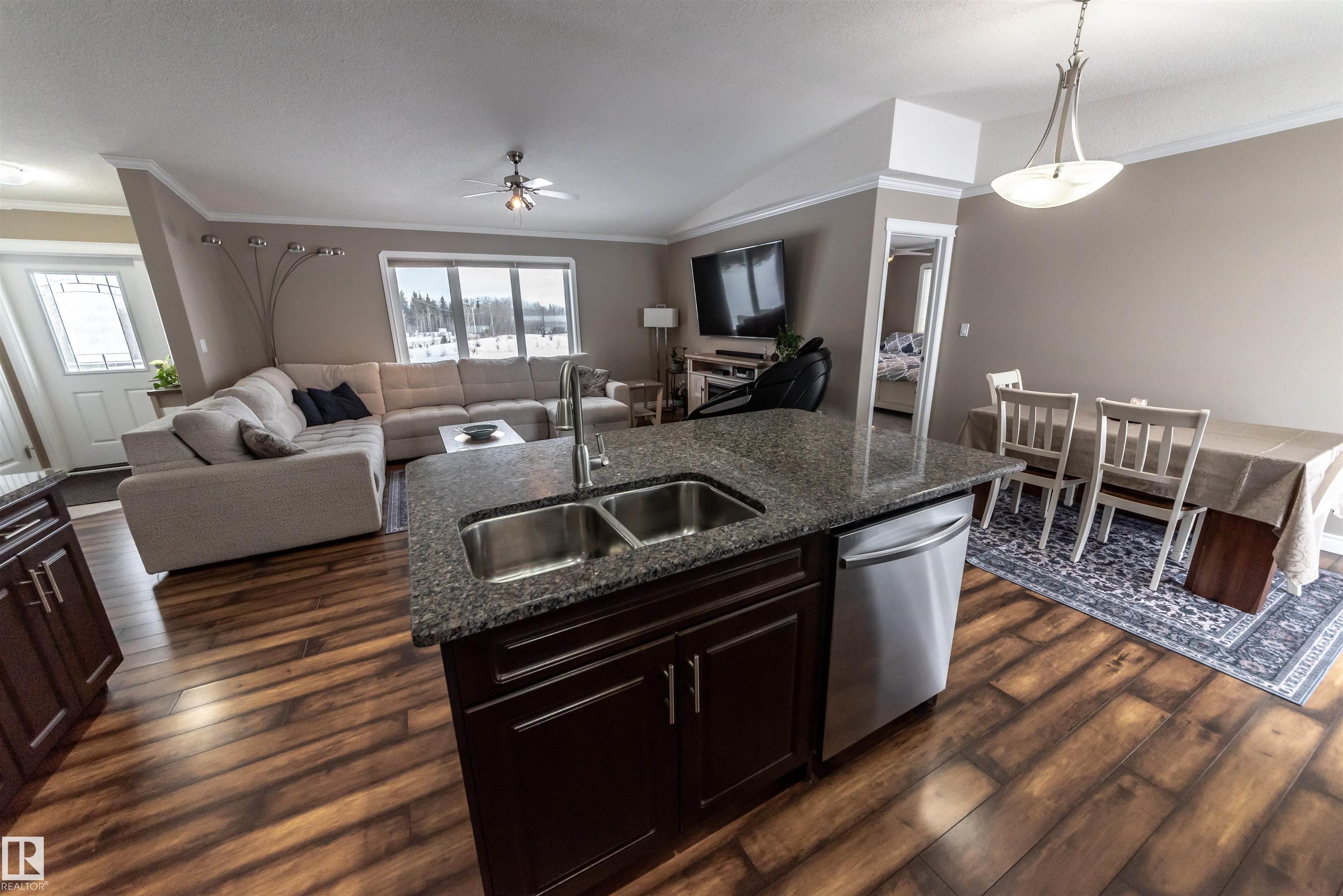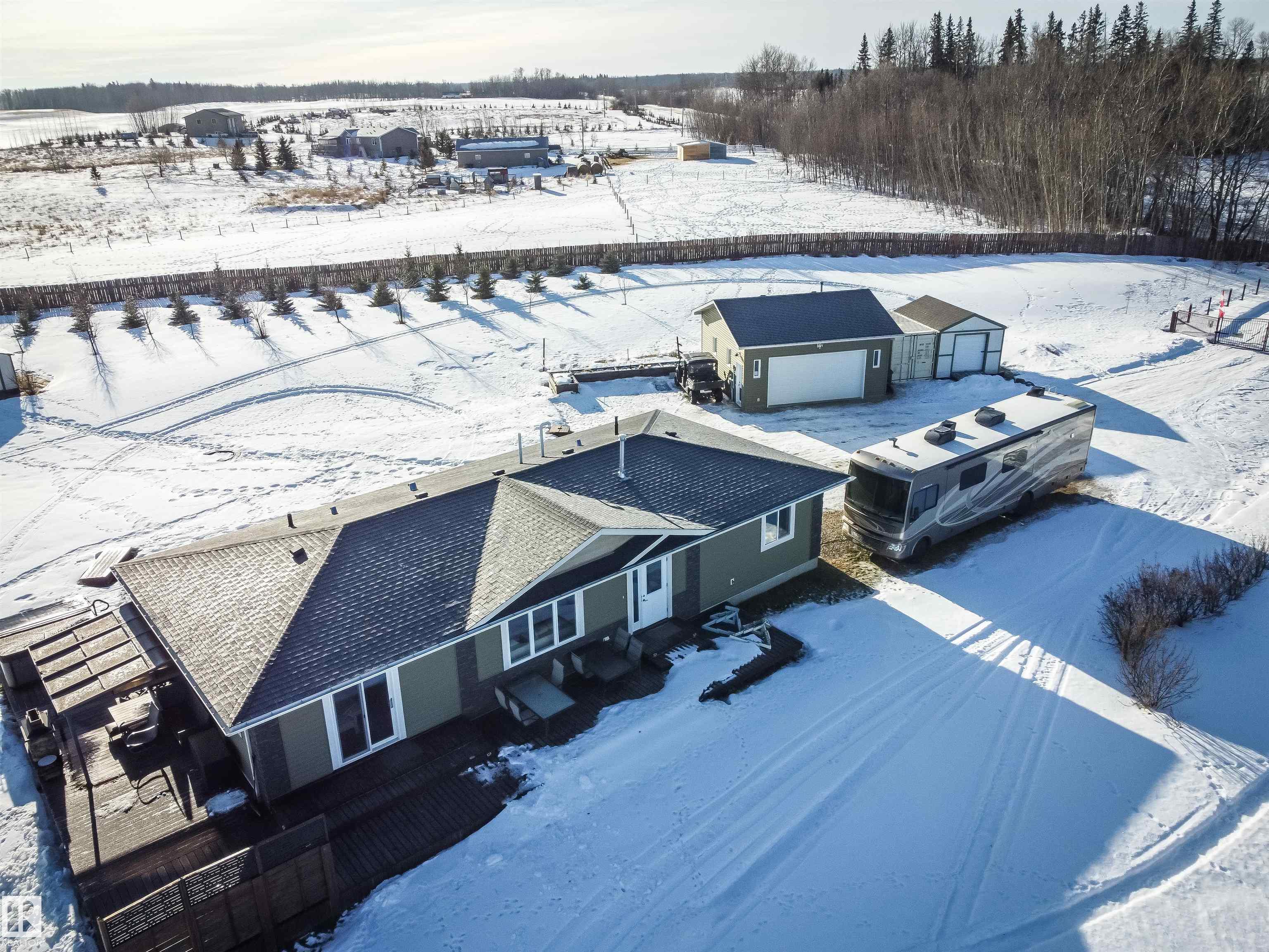 5.19 acres out of subdivision. This 1,500+ sqft. Jandel Home features 3 bed, 2 bath bungalow shows is in like new condition. Numerous upgrades such as vaulted ceilings, pot lights, rich dark cabinetry, granite countertops in the kitchen accompanied by S/S appliances, convenient walk-through pantry with stand up freezer, laminate flooring, central A/C for those hot summer nights, spacious primary bedroom w/ deck access, 3 pc ensuite and walk-in closet. full 4 pc bath, 2 spacious bedrooms and a view of Lac ...
