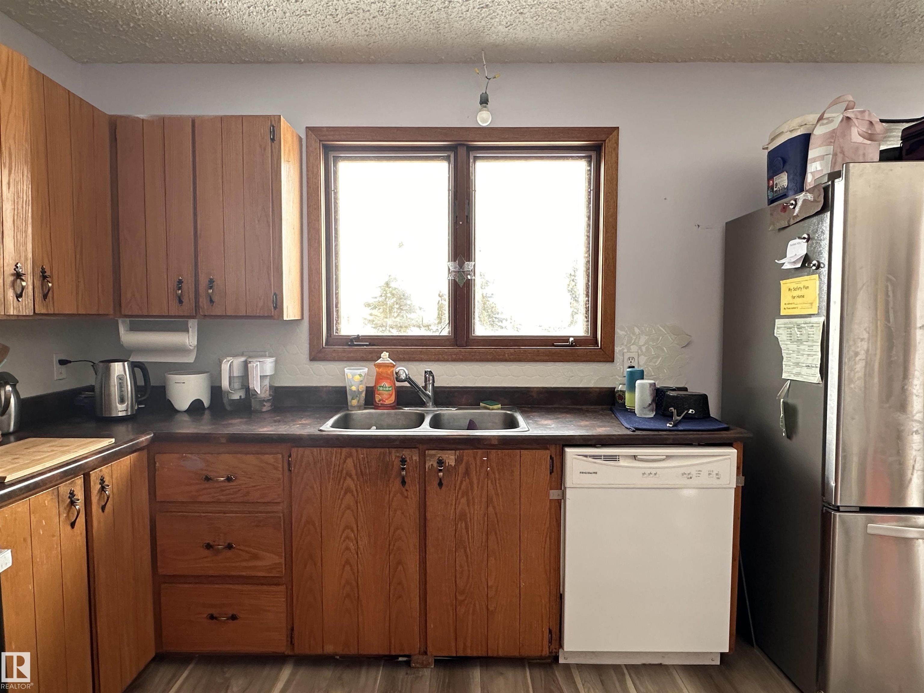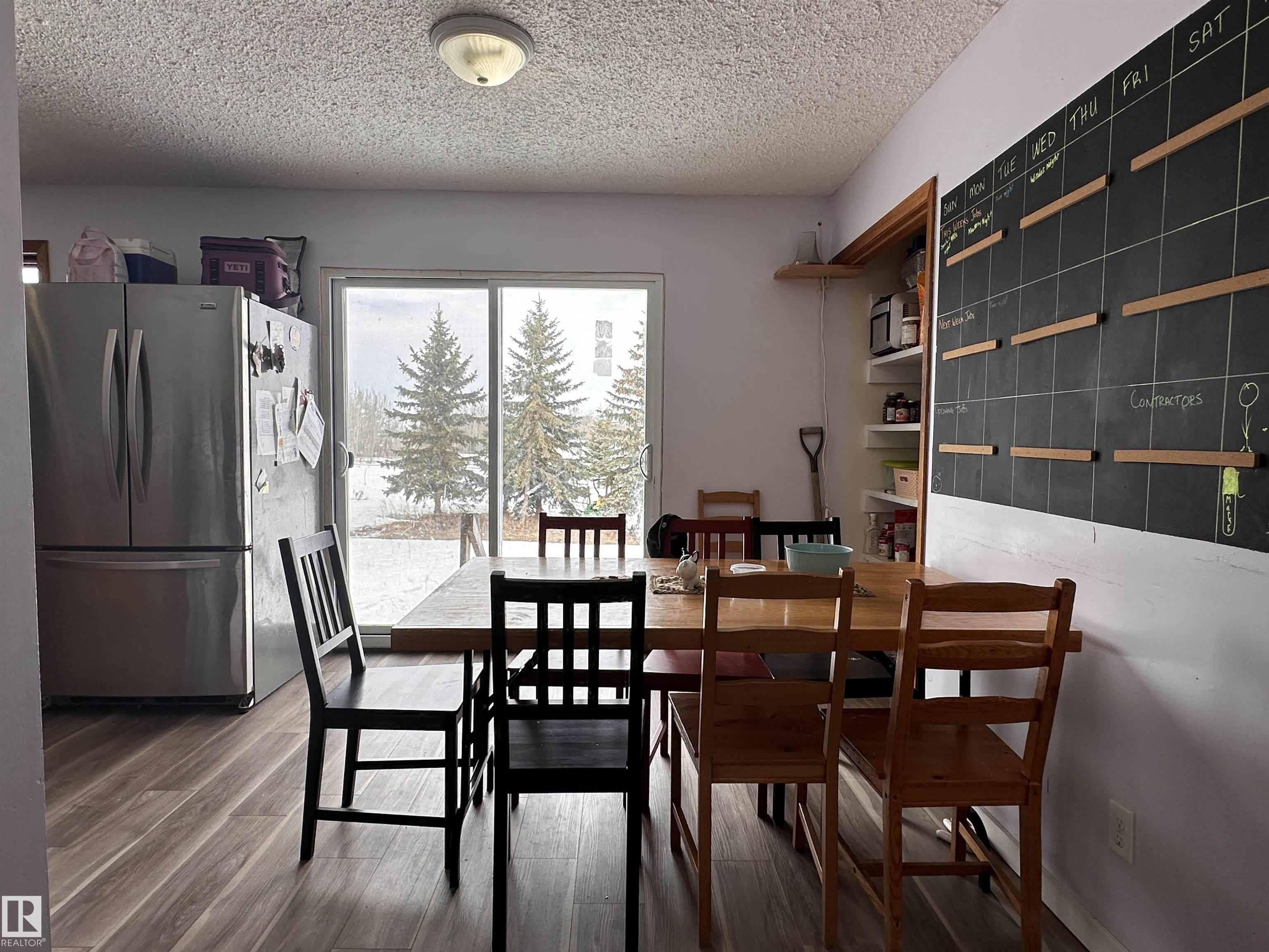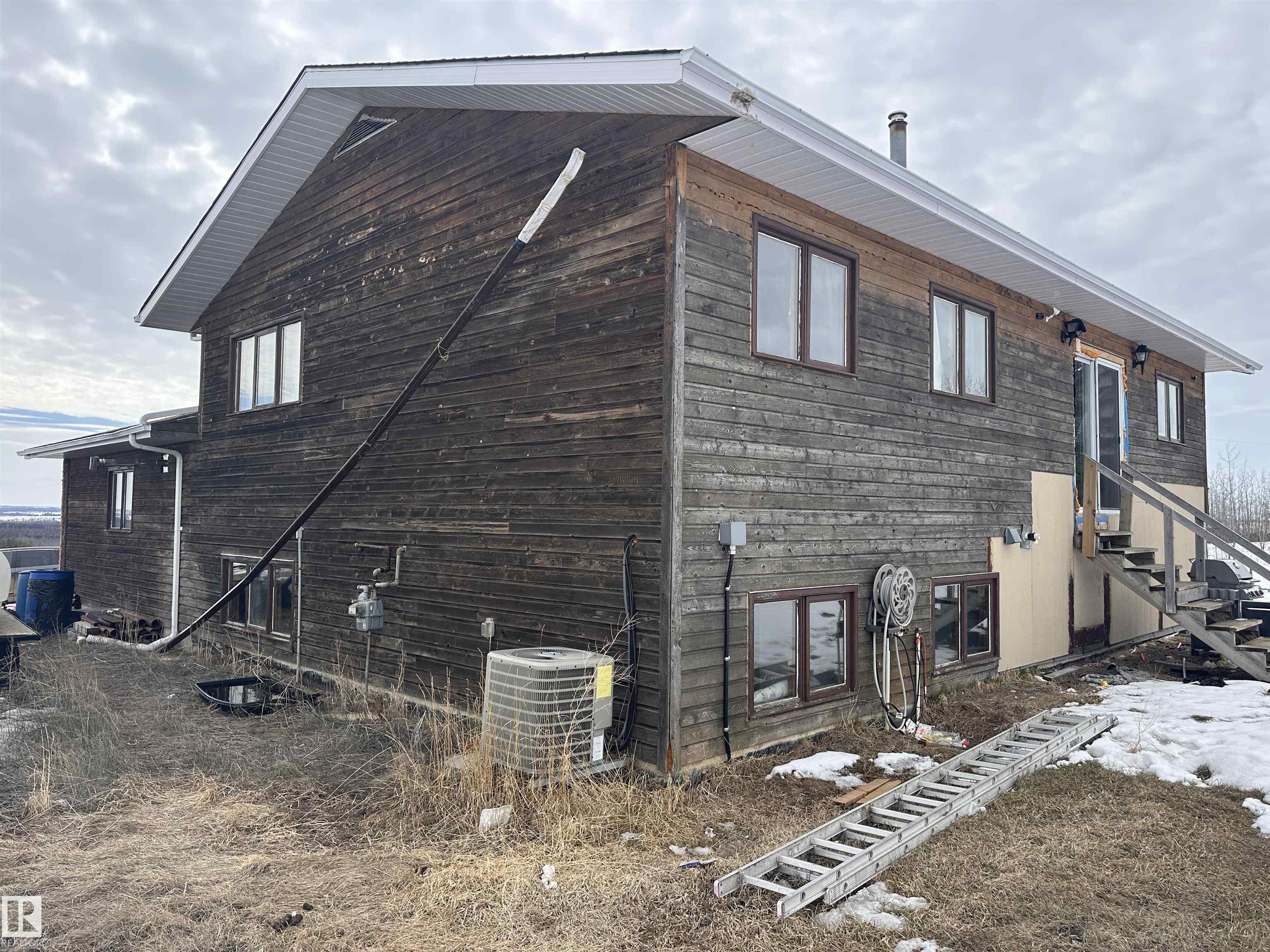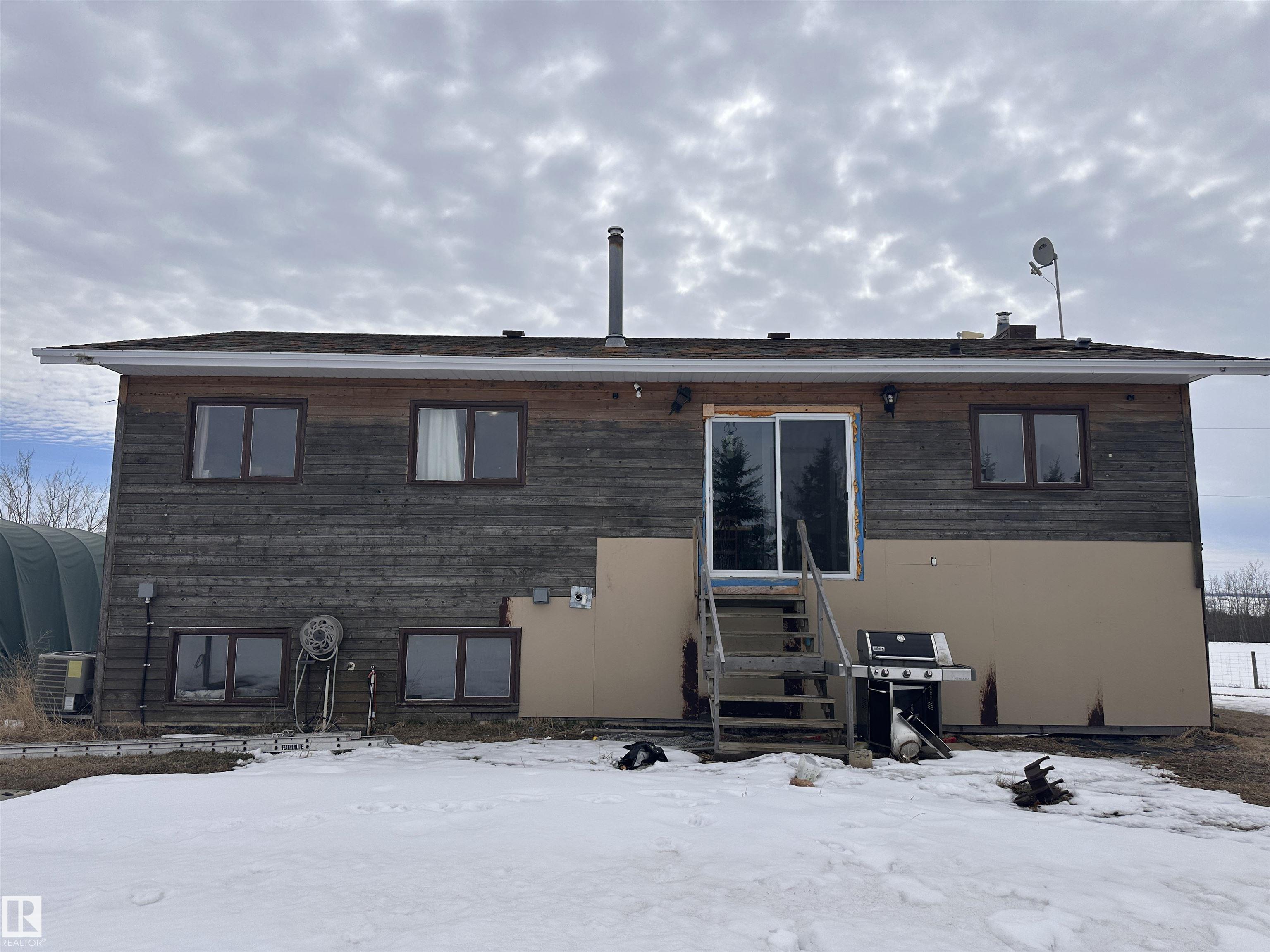 Impressive Bi-Level home sitting on a gorgeous 3 acre parcel. This home has thriving potential for your dream acreage life. Step into spacious porch area, leading upstairs or down. South facing bay window flooding natural light into the main living area. All wooden kitchen cabinets hold integrity and so much potential to make into your own! Patio doors directly off the dining room, set up perfectly for summer season with hook ups for a NG BBQ. Good size primary bdrm with a convenient 2 pc ensuite. 2 more bd...