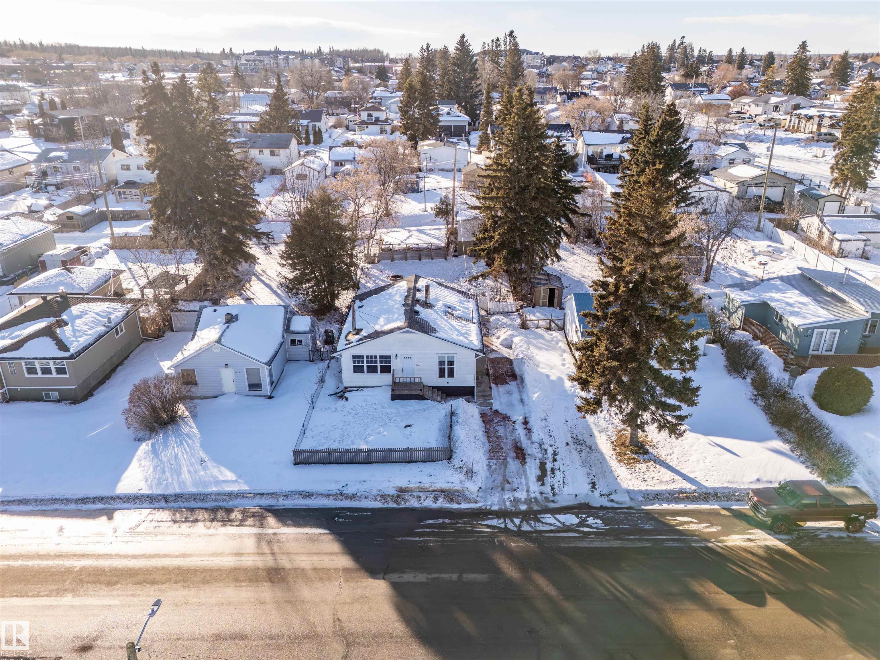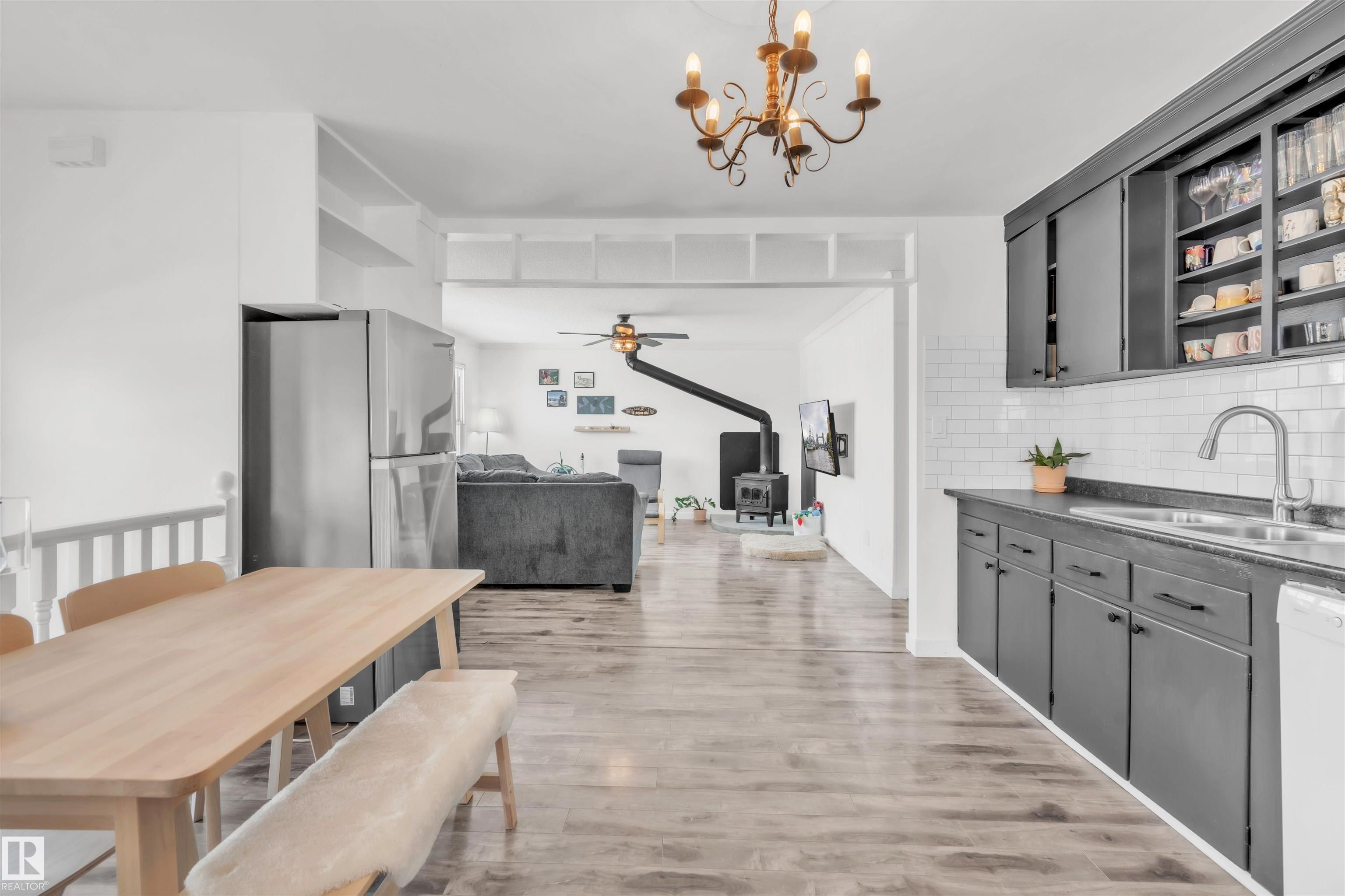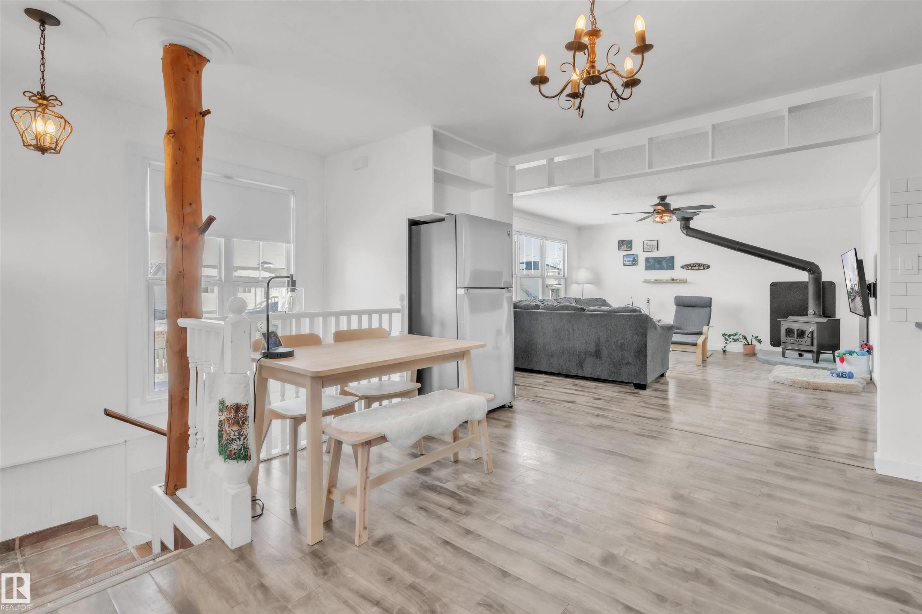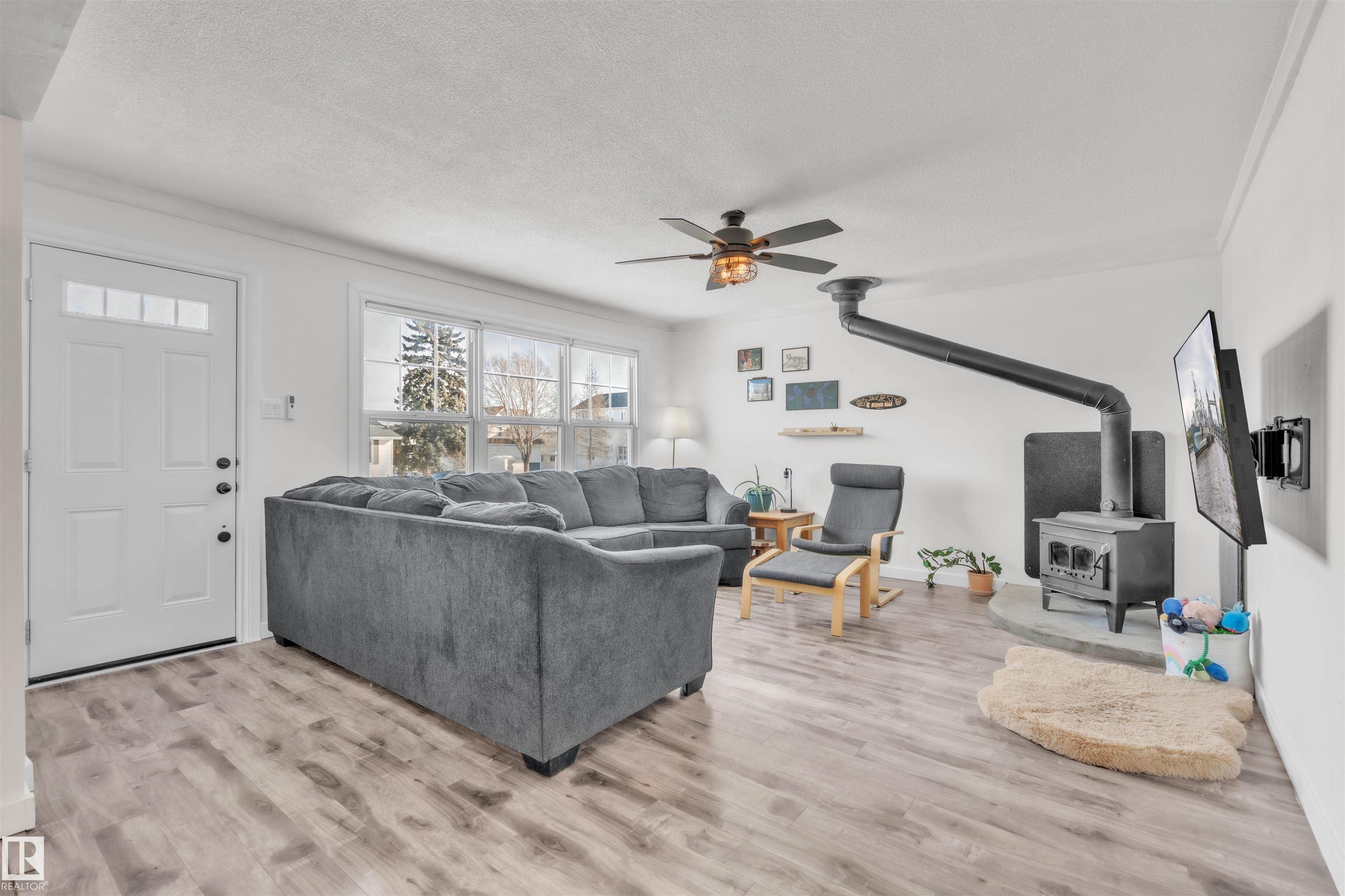Situated just minutes from the Cold Lake Marina, shopping, and restaurants, this well-maintained bungalow with a legal basement suite offers exceptional versatility and value. The upper level features three bedrooms, laminate flooring throughout, a bright eat-in kitchen, and a generous living room warmed by a cozy wood-burning stove. A large main bathroom with a charming clawfoot tub adds character and comfort. The lower level for the main residence provides convenient laundry and additional storage. The se...
