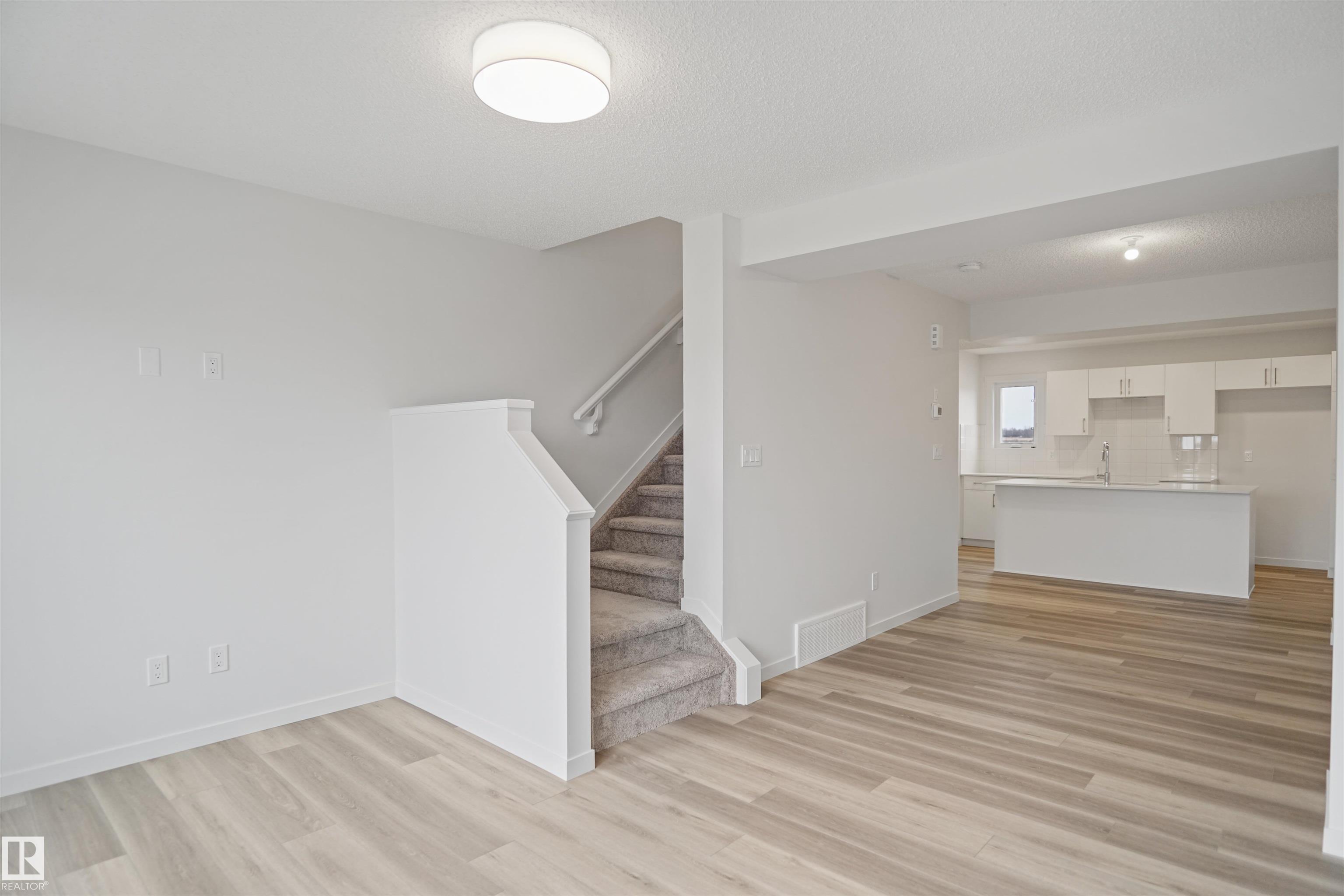 NO CONDO FEES and AMAZING VALUE! You read that right welcome to this brand new townhouse unit the “Gabriel" Built by StreetSide Developments and is located in one of Edmonton's newest premier West End communities of Rosenthal. With almost 1200 square Feet, it comes with front yard landscaping and a single over sized attached garage, this opportunity is perfect for a young family or young couple. Your main floor is complete with upgrade luxury Vinyl Plank flooring throughout the great room and the kitchen....