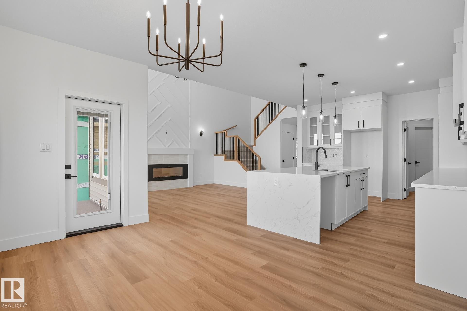Discover this impressive WALKOUT home in Lakeview, offering over 2,300 sq ft. The open-concept main floor features a striking great room with a custom feature wall and electric fireplace, and a seamless flow into the chef-inspired kitchen. A walk-through pantry, spacious mudroom, and convenient main floor bedroom with a full bath make this layout perfect for families, guests, or multi-generational living. Step out onto the rear deck overlooking the serene dry pond, complete with a BBQ gas line, making it th...